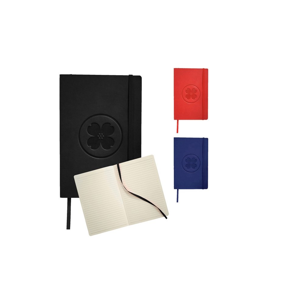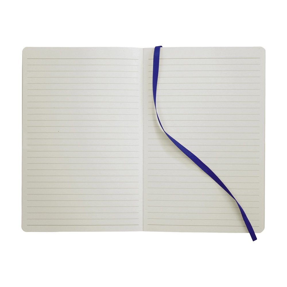 - Классический блокнот с мягкой обложкой. Блокнот с мягкой на ощупь обложкой (ориентир размер А5) с эластичной застежкой, закладкой, кармашком для заметок внутри и 80 листов линованной бумаги (80 г/м²). Термо ПУ.