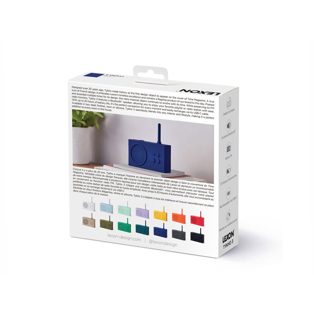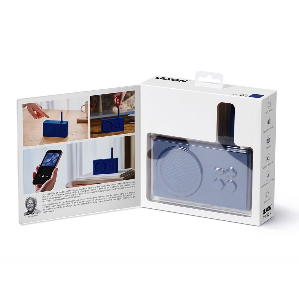 - Созданный более 20 лет назад, Tykho вошёл в историю как первый дизайнерский объект, появившийся на обложке престижного журнала Time. Будучи символом французского дизайна, он воплощает непреходящее совершенство Lexon и по сей день остаётся культовым продуктом. Этот культовый радиоприёмник в ретро-стиле, многократно отмеченный наградами за свой дизайн, развивается в ногу со временем. Сохраняя традиционную функциональность FM-радио, Tykho теперь оснащён Bluetooth®-динамиком, что делает его неотъемлемой частью повседневной жизни. - Bluetooth®-динамик с FM-радио - Защита от брызг - Диапазон частот: FM 88 108 МГц - Радиус действия Bluetooth®: 10 м - Срок службы батареи: 20 ч - Время зарядки: 4 ч - Заряжается через USB-C - кабель в комплекте