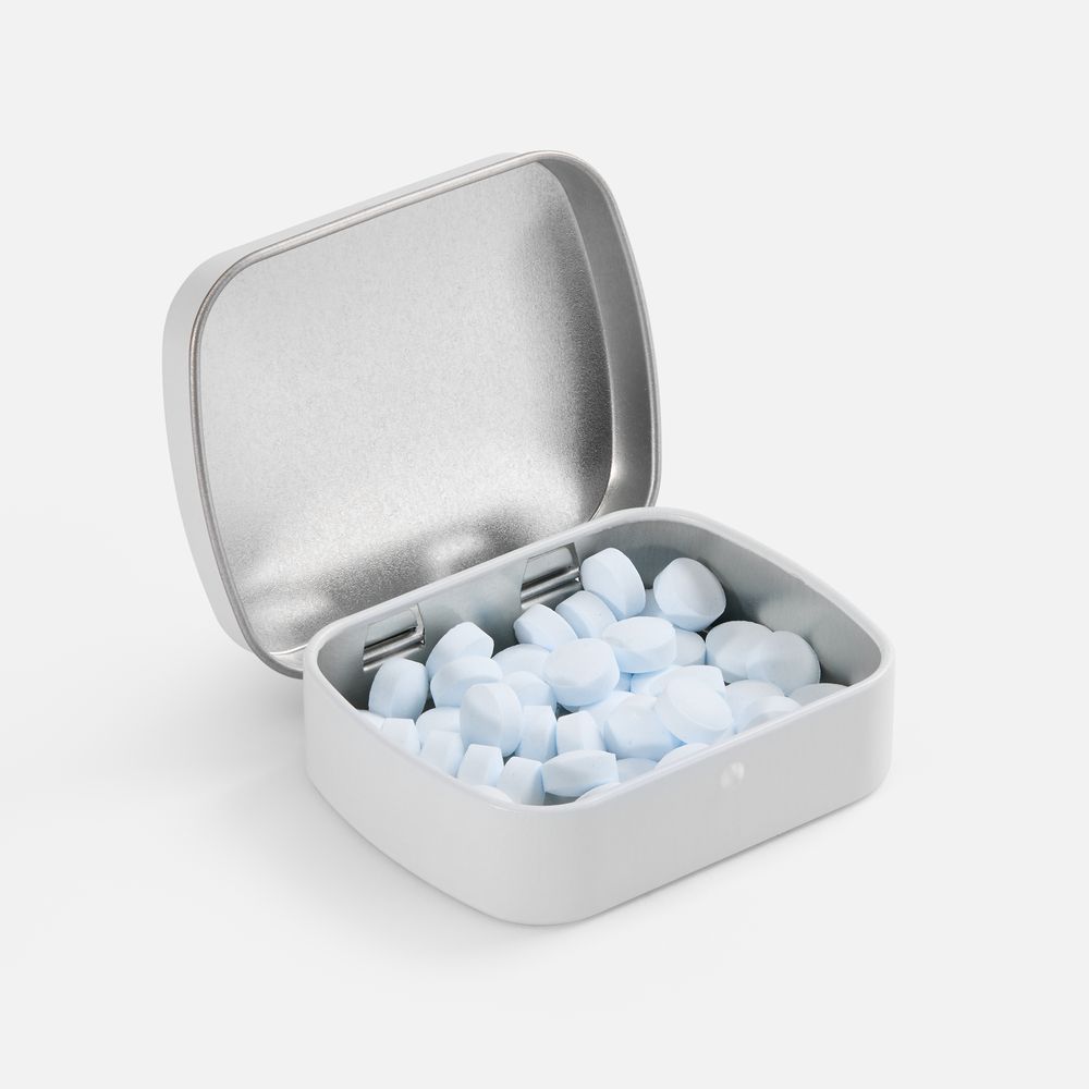 - Освежающие драже без сахара с мятным вкусом. Миниатюрную жестяную коробочку удобно держать под рукой: в офисе, дома или в сумке.