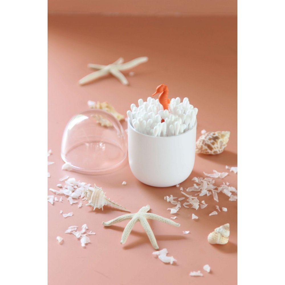 - Контейнер для ватных палочек "Seahorse" закрывается плотной крышкой, поэтому содержимое защищено от выпадения и нежелательных внешних воздействий. Аксессуар можно хранить в ванной на полочке или туалетном столике. При необходимости контейнер легко заполняется, палочки хранятся в таком положении, чтобы их было удобно брать. Корпус подставки герметичен и устойчив. Никто не мог подумать, что ватная палочка влияет на безопасность морских обитателей, поэтому, пожалуйста, будьте ответственны при использовании всех пластиковых одноразовых изделий, используйте только по мере необходимости и перерабатывайте столько, сколько сможете. Размер: 7 х 11,4 х 7 см