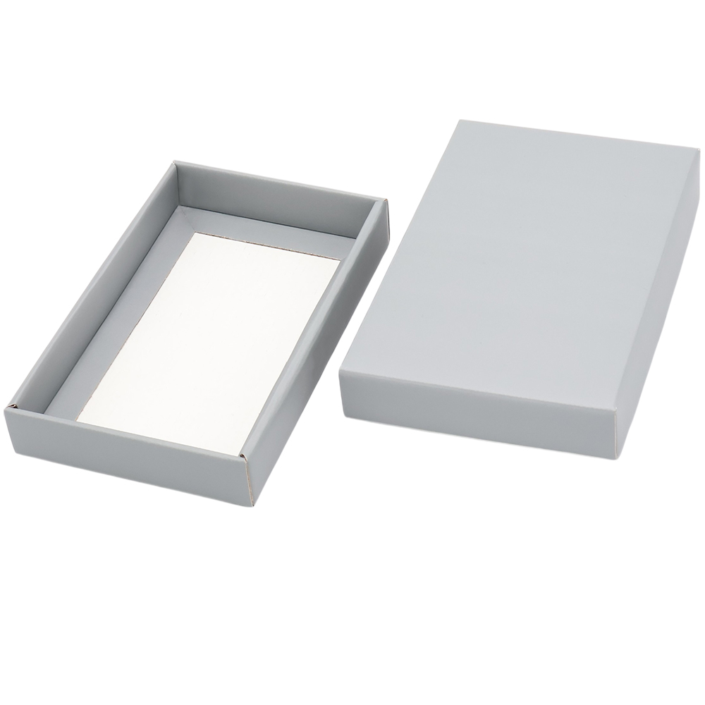 - Стильная и функциональная коробка Protect типа "Крышка+дно" в классическом сером цвете с матовой поверхностью. Внутренние размеры коробки: 164*100*24 мм. Основа коробки - гофрокартон Т23Е. Поставляется в разобранном виде!