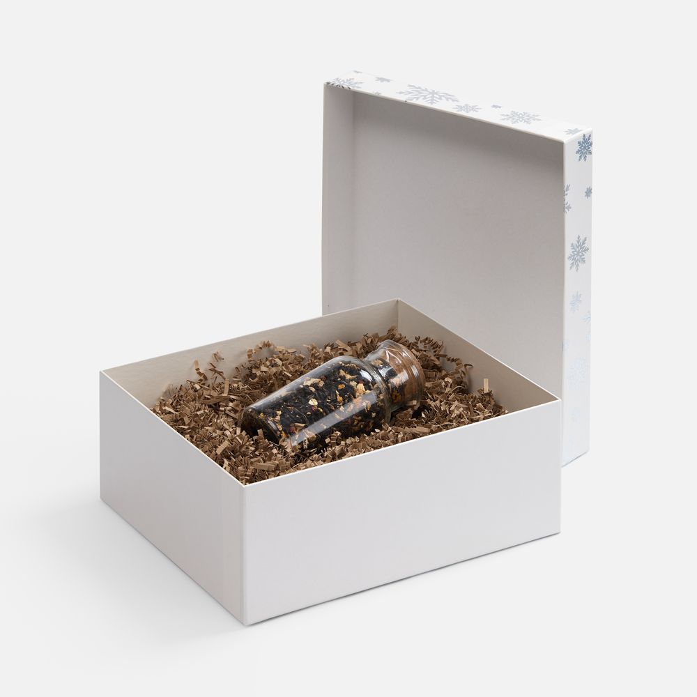 - Коробка выполнена из переплетного картона толщиной 1,5 мм, кашированного бумагой TPG с тиснением серебристой фольгой.