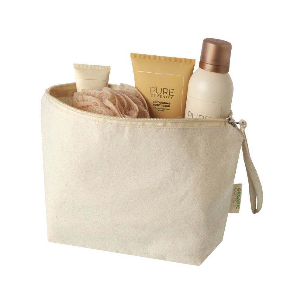 Большая и вместительная косметичка Odisha изготовлена из 100% сертифицированного OCS органического хлопка плотностью 180 г/м², произведенного в Индии. Имеет ремешок для удобной переноски. Объем: 3 литра.