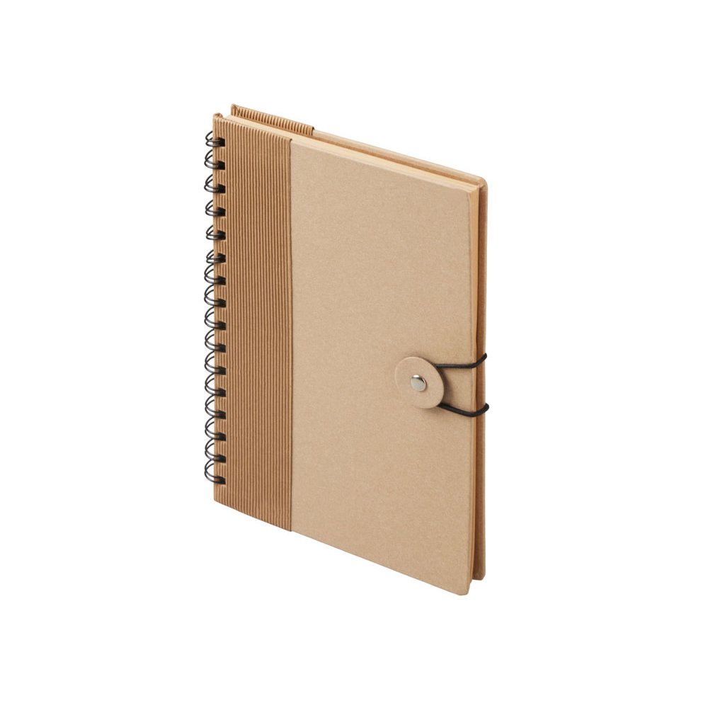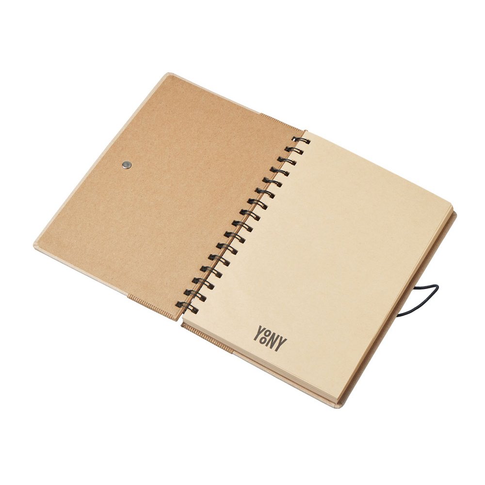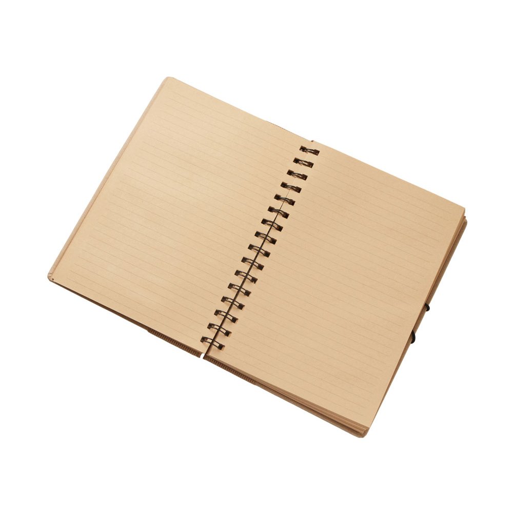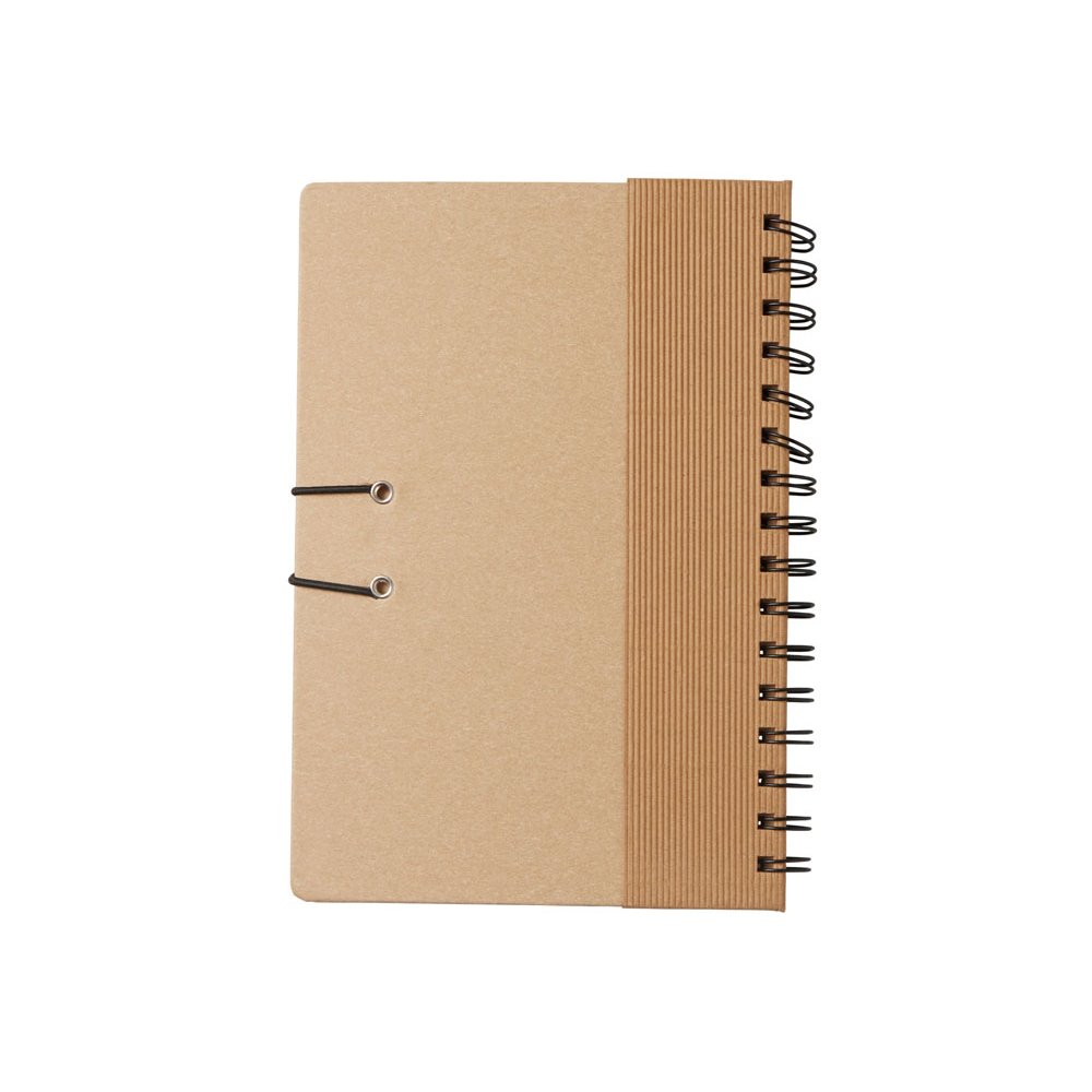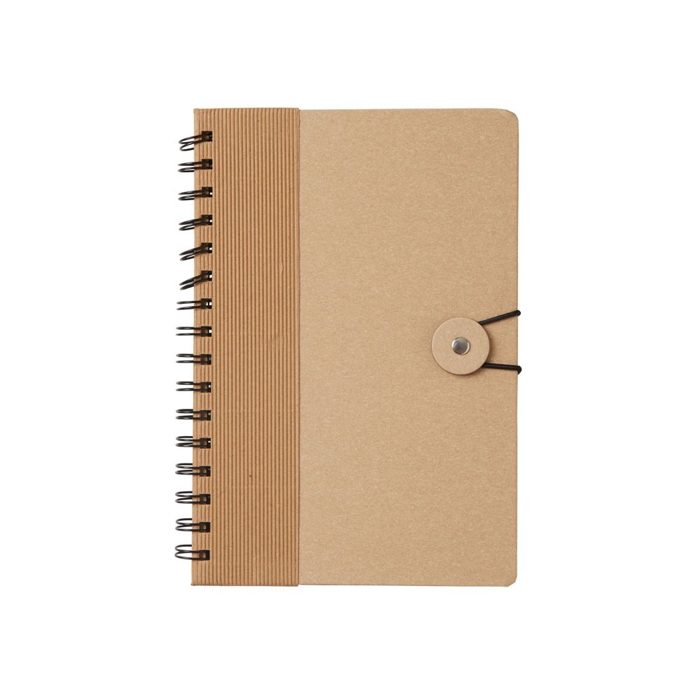 - Крафтовый блокнот на спирали с фиксирующей резинкой. 80 листов коричневой бумаги 70 г/м2.
