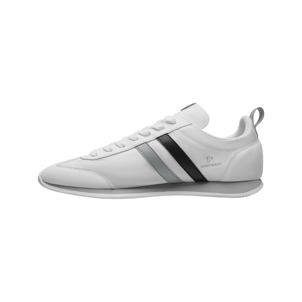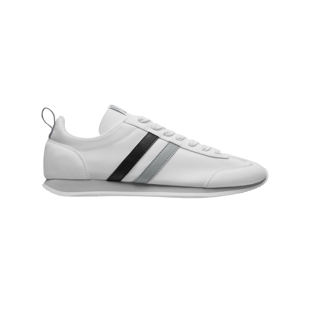 - Повседневные кроссовки в стиле ретро с узким носком и резиновой подошвой. Фиксация на ноге с помощью шнурков, декоративные боковые полоски.