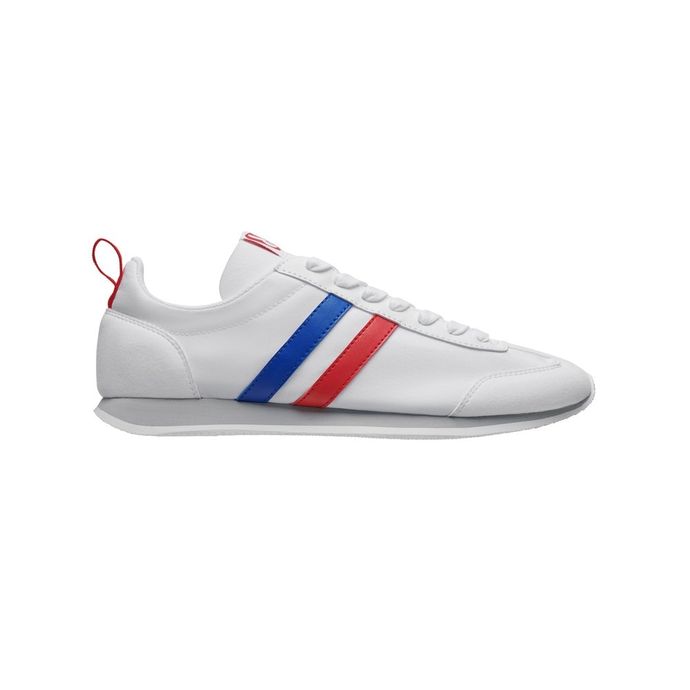 - Повседневные кроссовки в стиле ретро с узким носком и резиновой подошвой. Фиксация на ноге с помощью шнурков, декоративные боковые полоски.