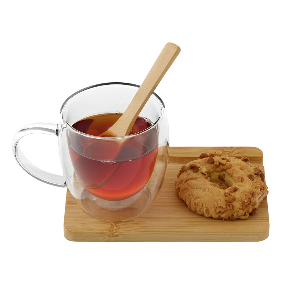 - "Teatrio" - стильный набор для вашего дома или офиса. Кружка из прочного боросиликатного стекла объёмом 250 мл с ложечкой и подставкой из натурального бамбука — это сочетание практичности, экологичности и современного дизайна. Такой набор идеально подойдёт для утреннего кофе, чая или любимого напитка, а также станет отличным подарком. Преимущества набора: - Экологичные материалы — боросиликатное стекло и натуральный бамбук, обработанный пищевым маслом. - Надёжность и долговечность — стекло устойчиво к высоким температурам и не впитывает запахи. - Элегантный дизайн — минимализм, который гармонично впишется в любой интерьер. - Практичный комплект — кружка 250 мл, ложечка 13 см и удобная подставка 16×11,3 см. - Безопасная упаковка — каждый набор упакован с использованием силикагеля, пузырчатой плёнки и крафтовой коробки с печатью. Уход: не использовать в посудомоечной машине и микроволновой печи. С таким набором каждый глоток напитка станет ещё приятнее!