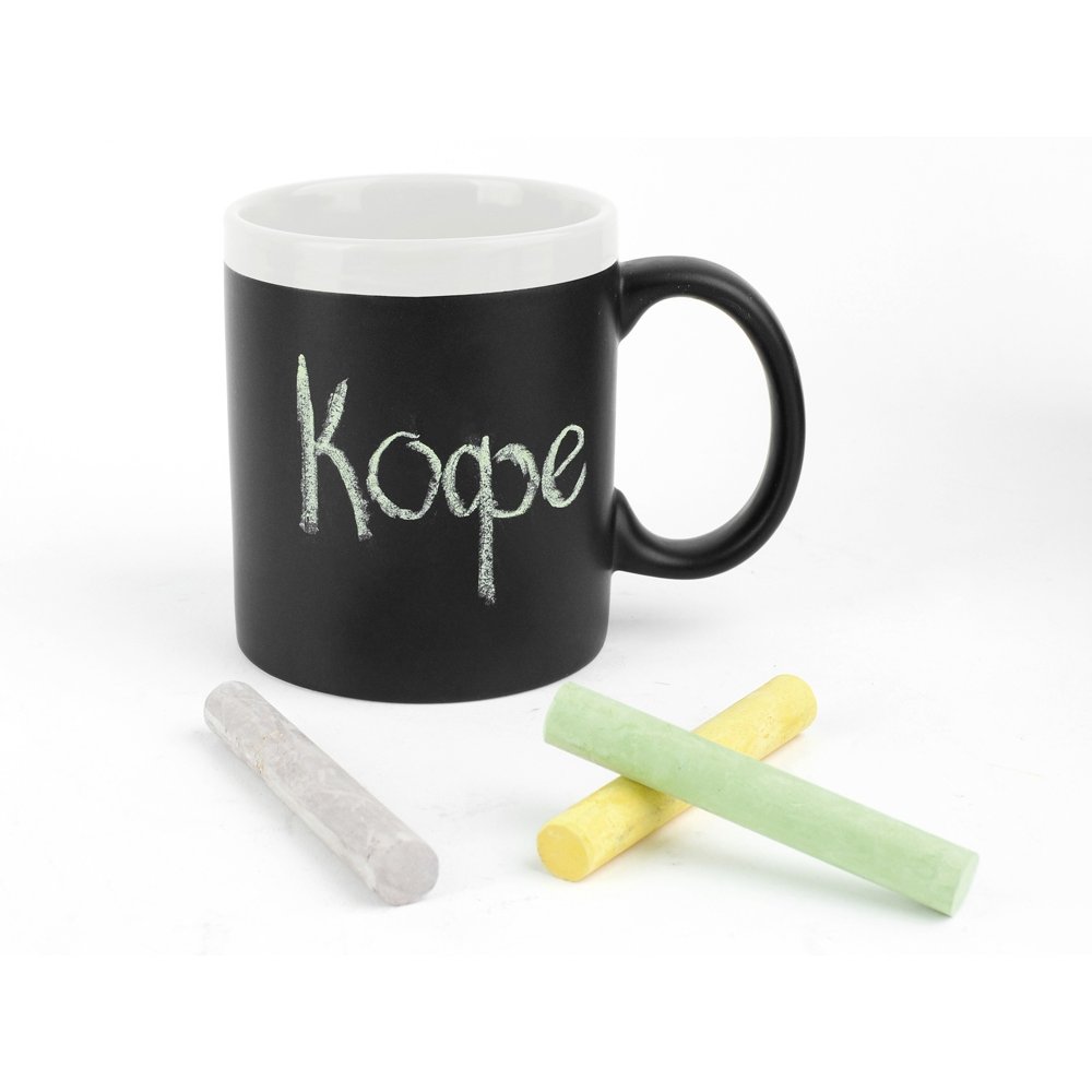 - Оригинальная кружка на 320 мл имеет специальную поверхность, на которой можно рисовать мелками, тем самым меняя дизайн кружки каждый раз. Необычный и полезный подарок для родных и друзей. Мелки в комплект не входят.