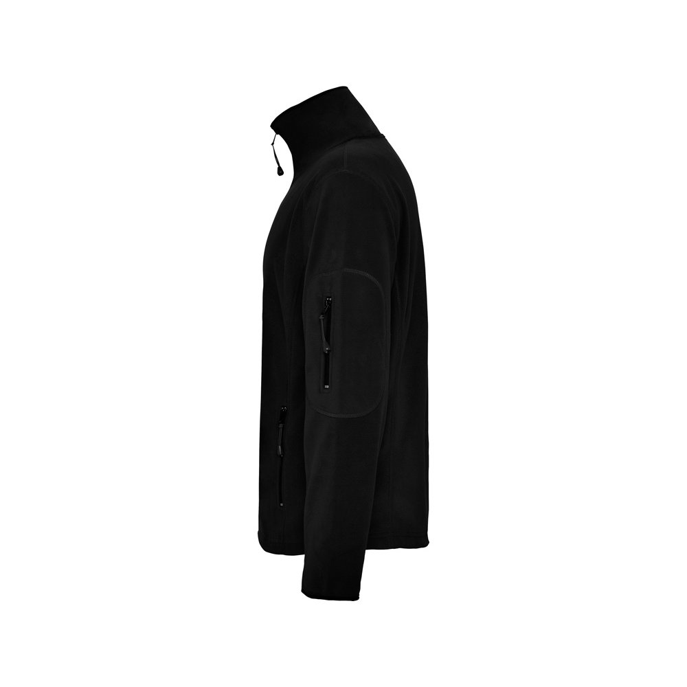 - Куртка из микрофлиса с высоким воротом. Контрастная центральная молния, боковые карманы на молнии, декоративная молния на левом рукаве, отделка резинкой по краю рукавов. Налокотники из основного материала.