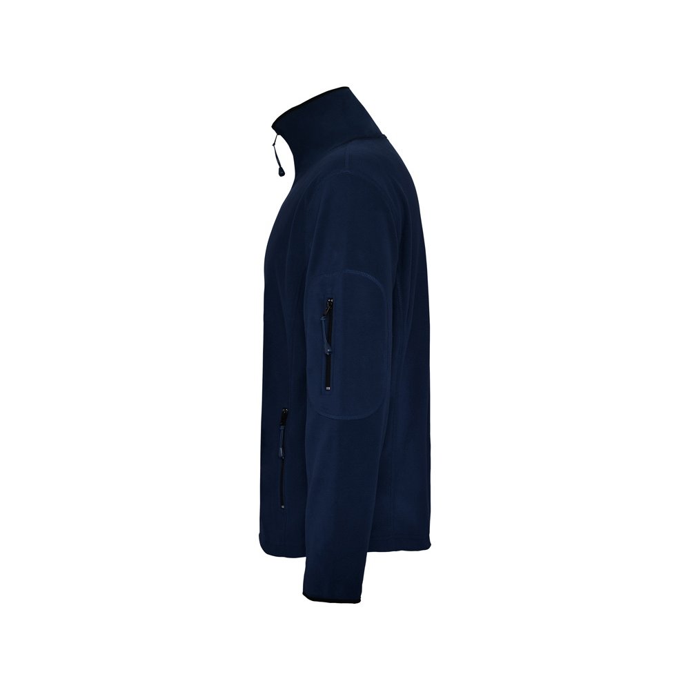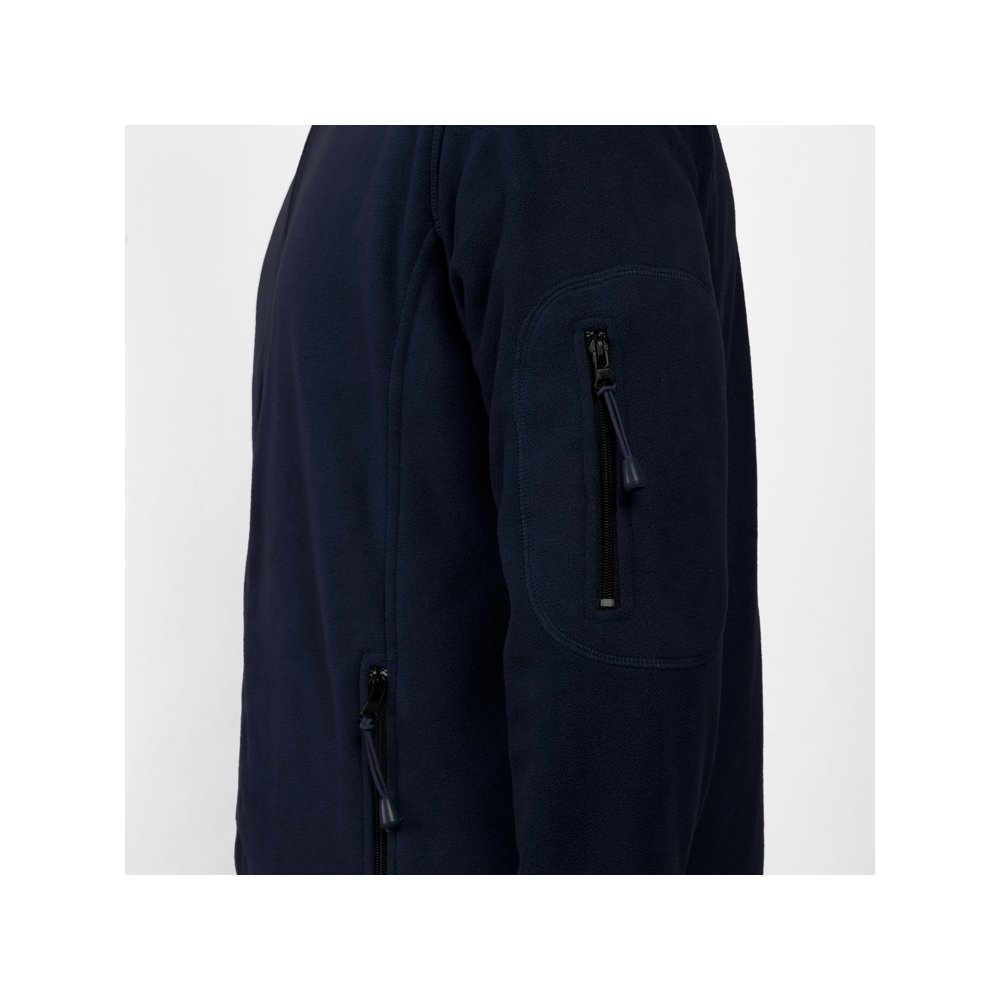 - Куртка из микрофлиса с высоким воротом. Контрастная центральная молния, боковые карманы на молнии, декоративная молния на левом рукаве, отделка резинкой по краю рукавов. Налокотники из основного материала.
