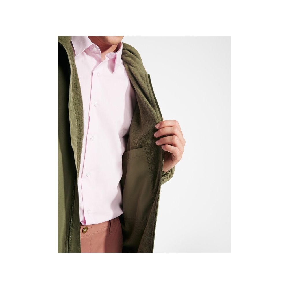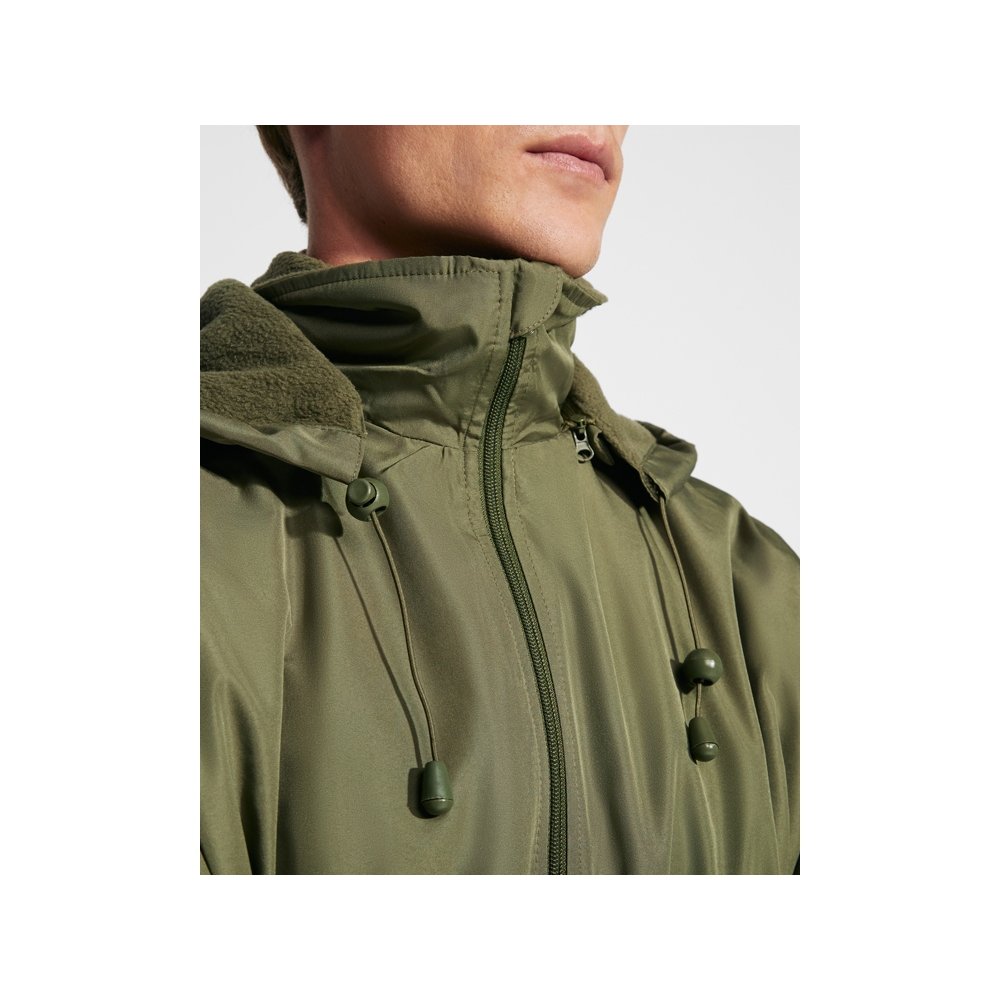 - Легкая водонепроницаемая куртка. · Высокий воротник и складывающимся капюшоном с регуляторами. · Подкладка из микрофлиса. · Центральная застежка·молния и защита для подбородка. · Эластичные манжеты. · Два боковых кармана на застежке·молнии. · Внутренний левый нагрудный карман.