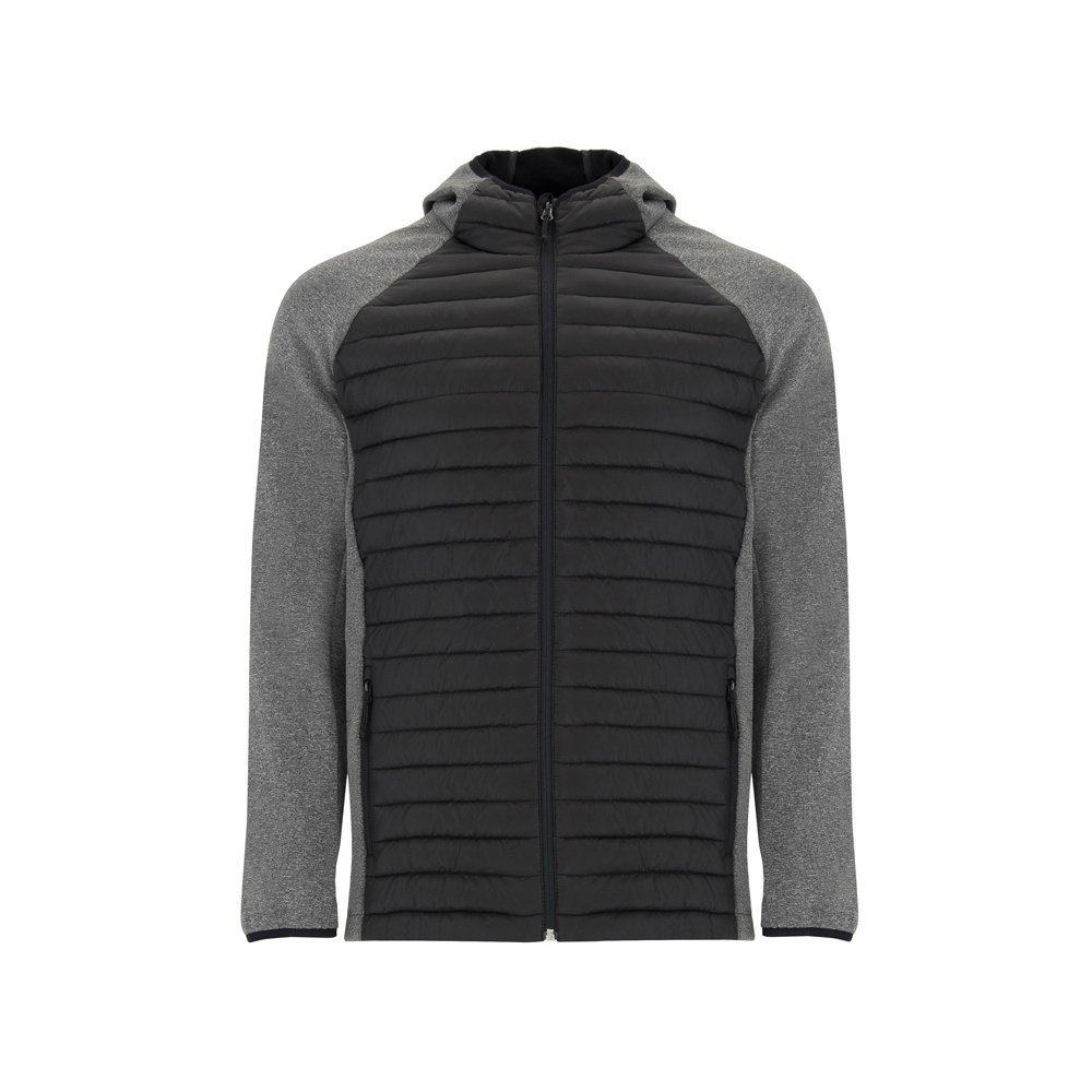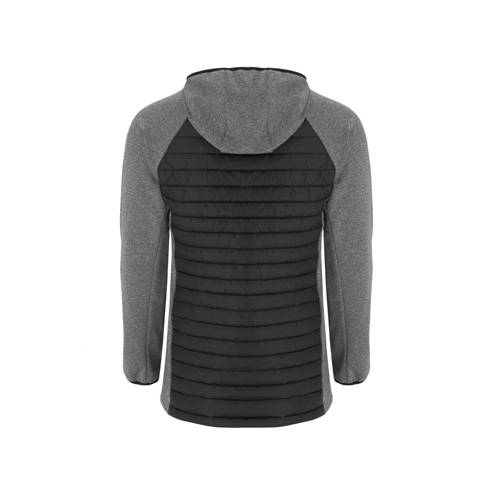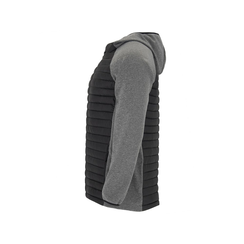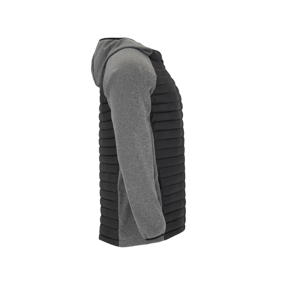 - Мужская куртка из двух комбинированных тканей. - Несъемный регулируемый капюшон. - Рукава реглан. - Ткань softshell на рукавах, боковых вставках и капюшоне. - Стеганая ткань с утеплителем спереди и сзади. - Молния в тон с бегунком и защитой для подбородка. - Два кармана спереди с молнией. - Воротник, манжеты и низ с эластичной окантовкой в тон.