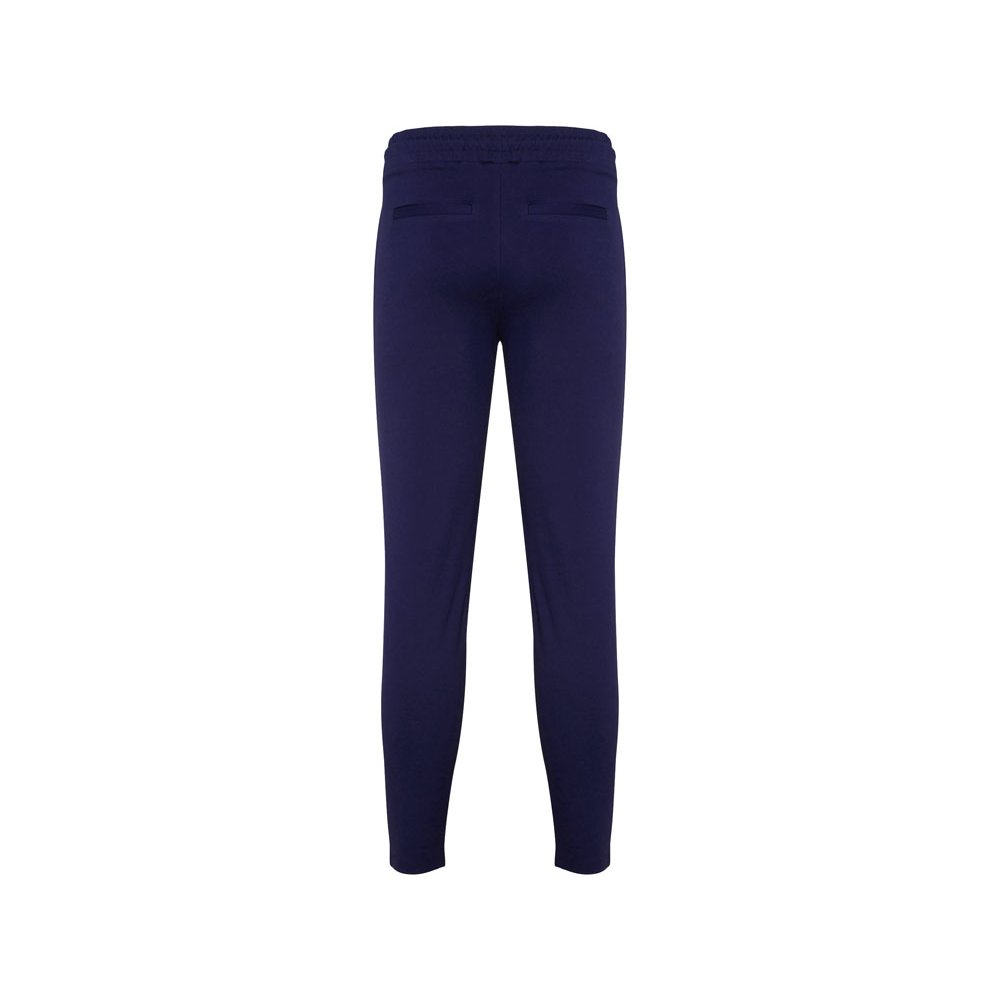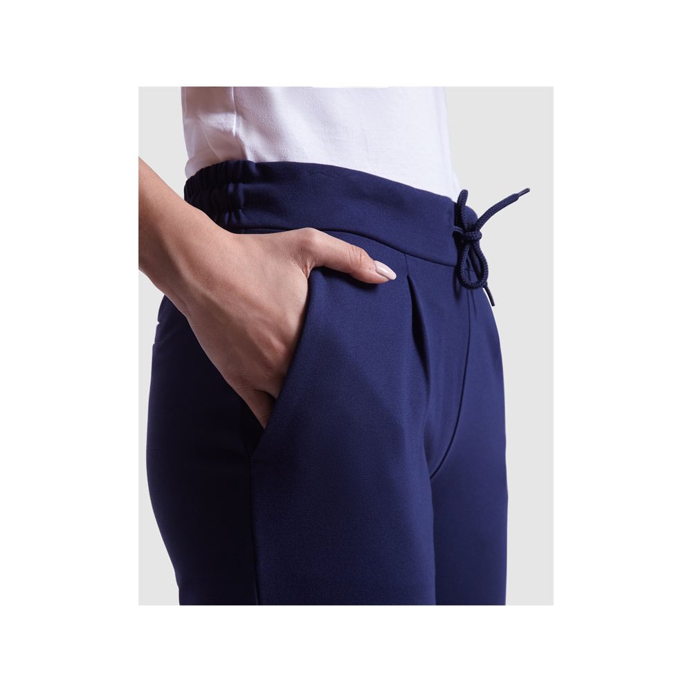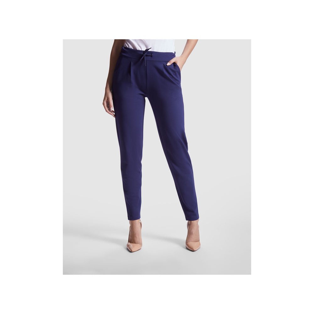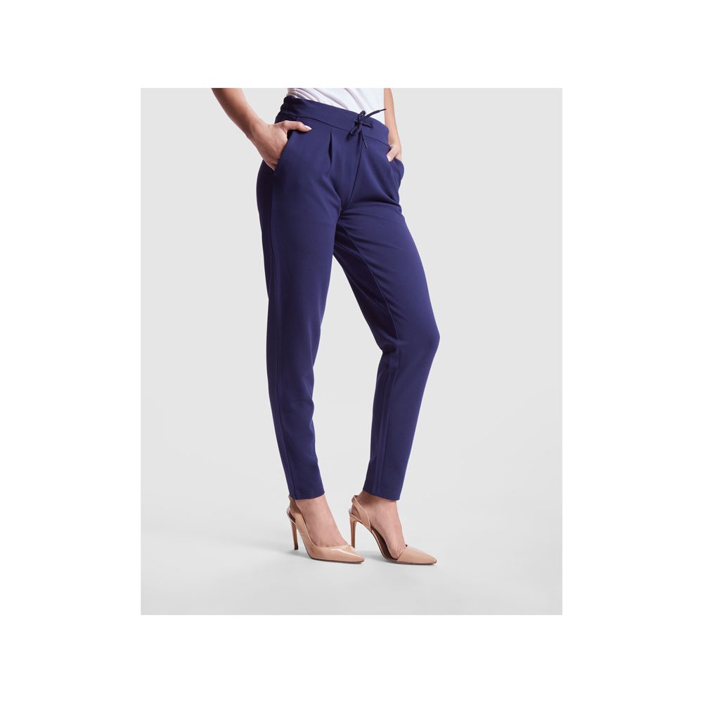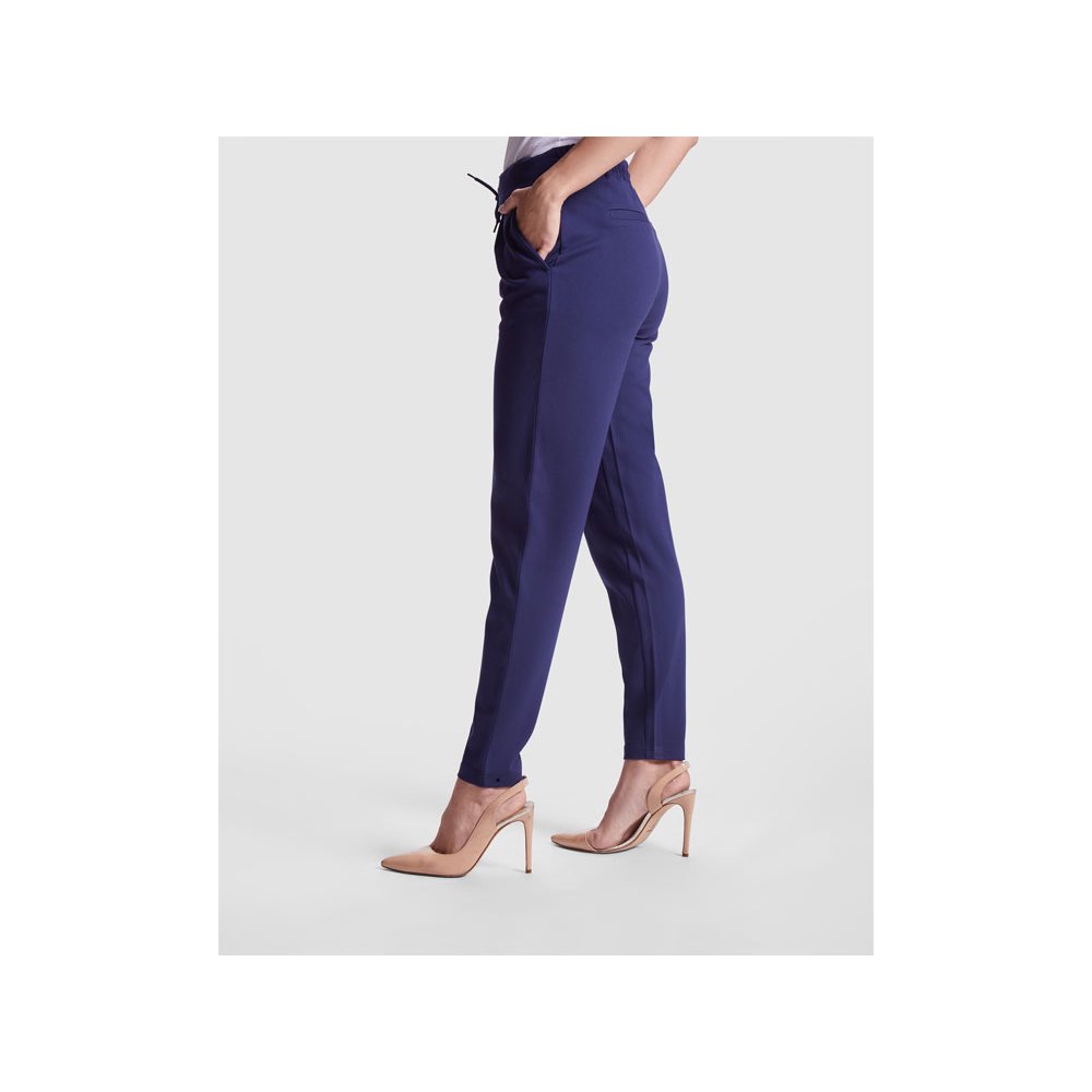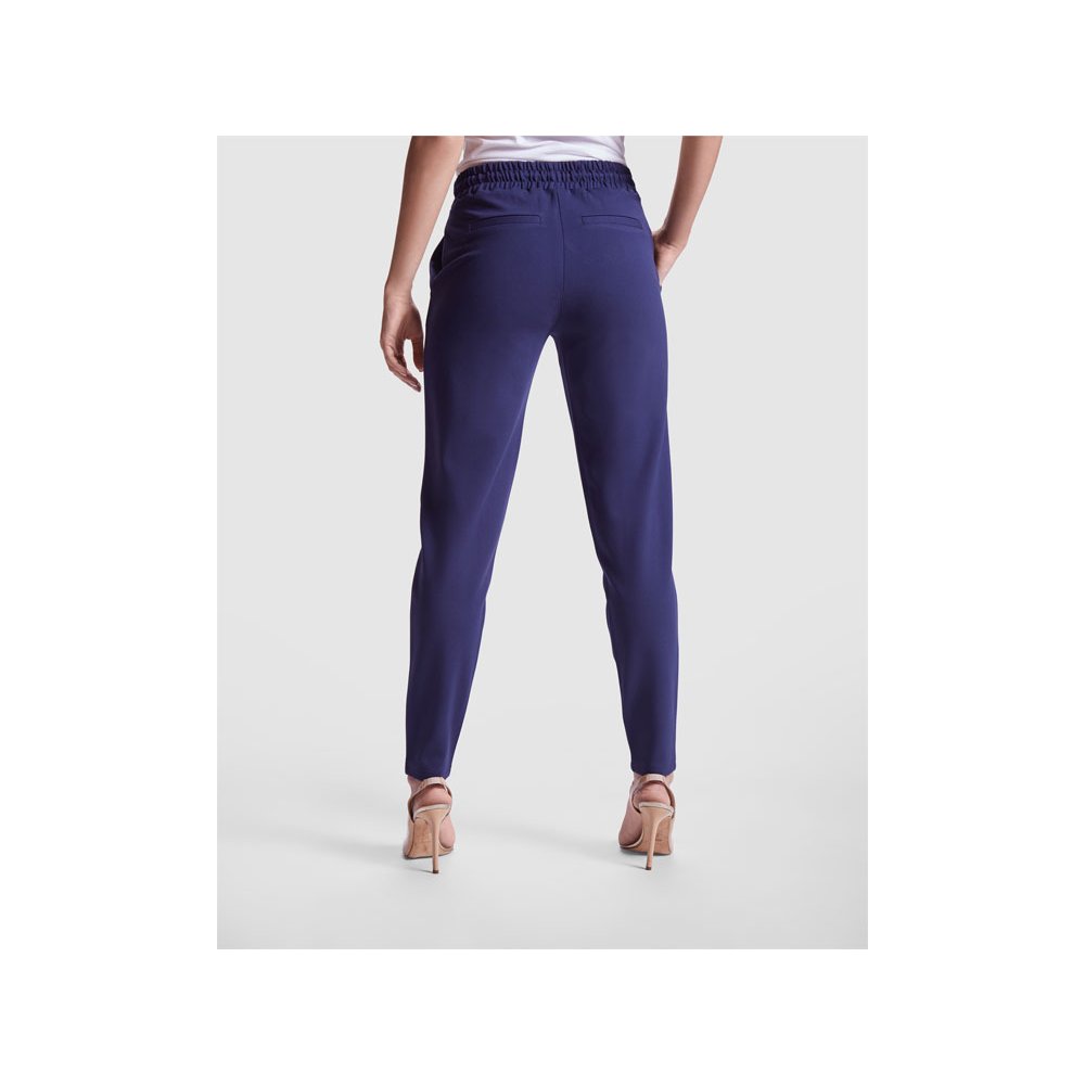 - Женские брюки из эластичной ткани. · Эластичный пояс на кулиске сзади. · Складки спереди. · Два передних кармана. · Два задних кармана на пуговицах.