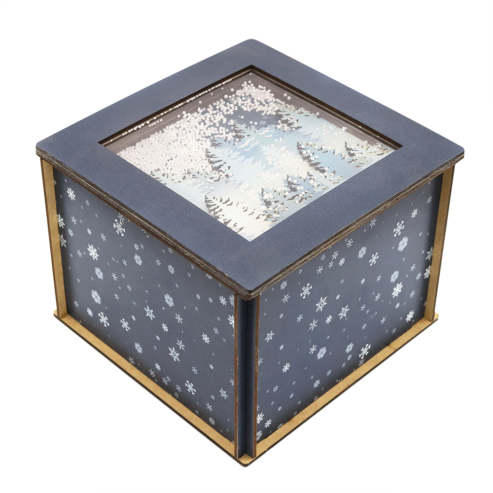 Лес в снегу (квадратная, темная) - упаковка новогодняя из дерева арт. 53214