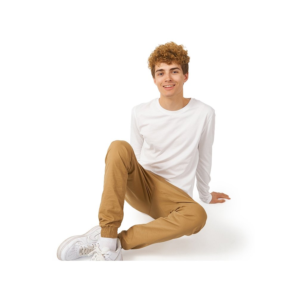 - Футболка с длинным рукавом комфортной посадки с боковыми швами. Горловина обработана рибом 1х1 и тесьмой по спинке. Футболка выполнена из хлопкового джерси.