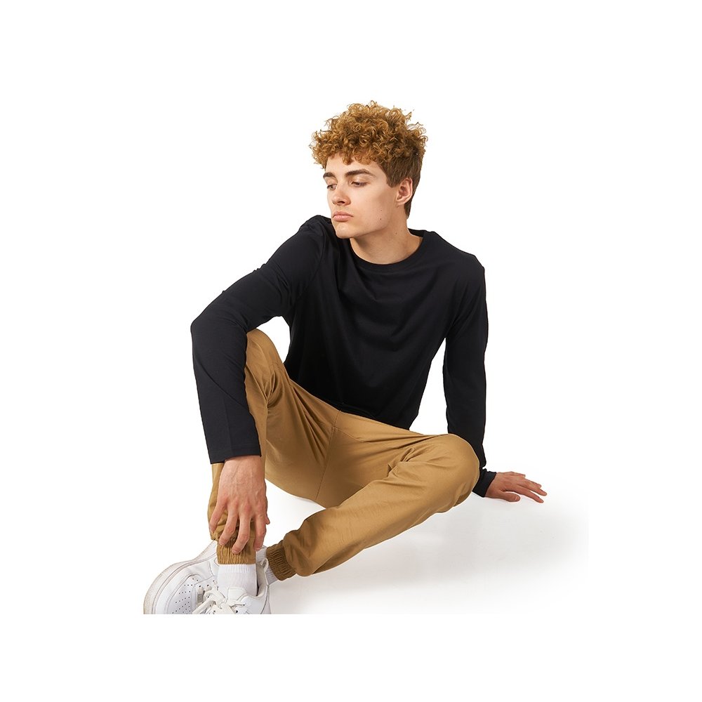 - Футболка с длинным рукавом комфортной посадки с боковыми швами. Горловина обработана рибом 1х1 и тесьмой по спинке. Футболка выполнена из хлопкового джерси.