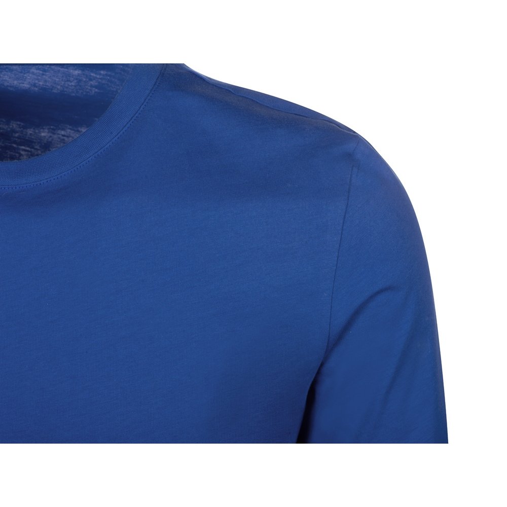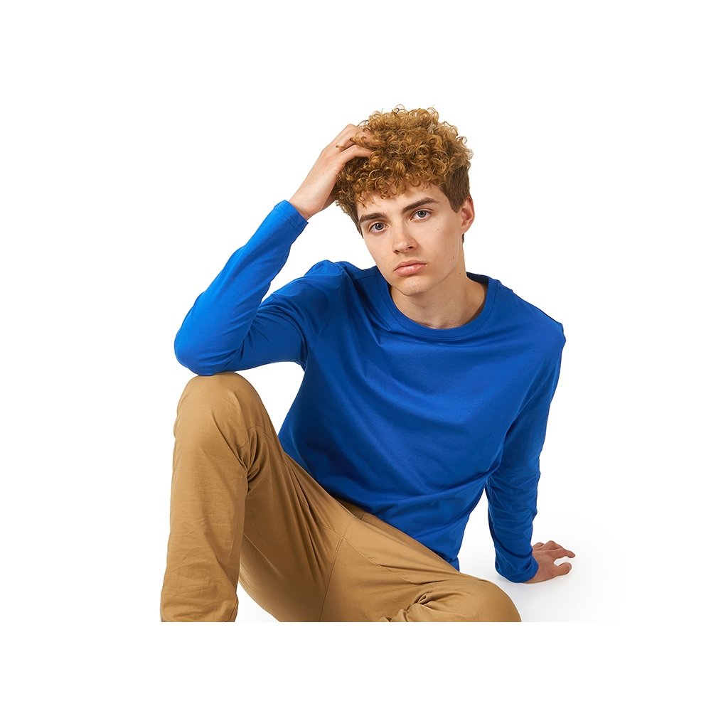 - Футболка с длинным рукавом комфортной посадки с боковыми швами. Горловина обработана рибом 1х1 и тесьмой по спинке. Футболка выполнена из хлопкового джерси.