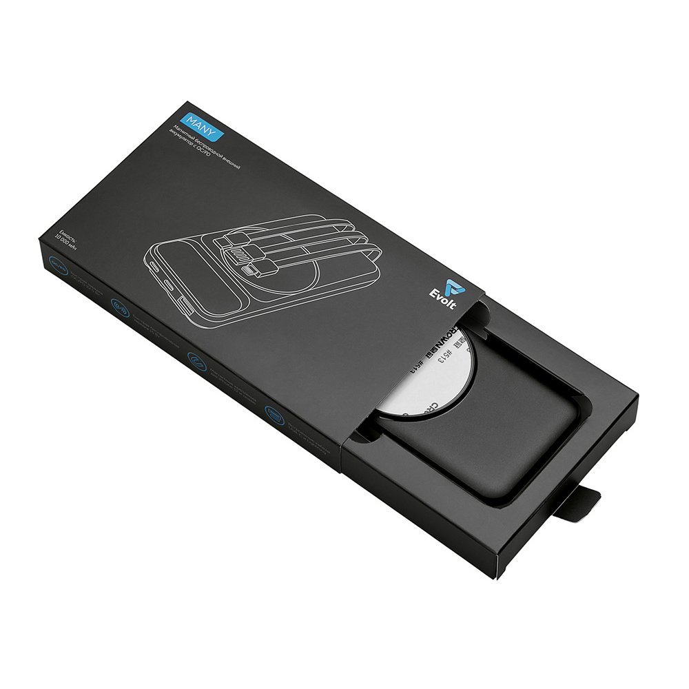 Магнитный беспроводной внешний аккумулятор со встроенными кабелями «Мэни», 10000 мАч арт. 590164.07