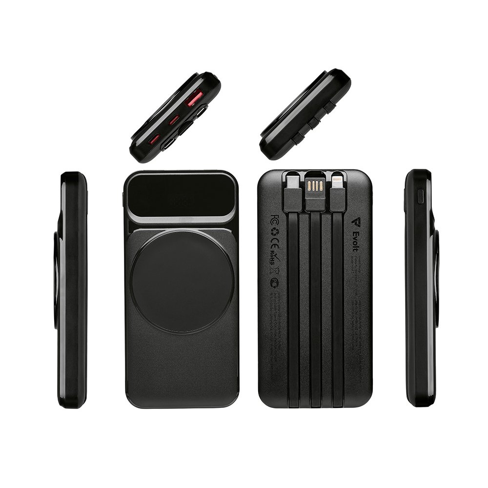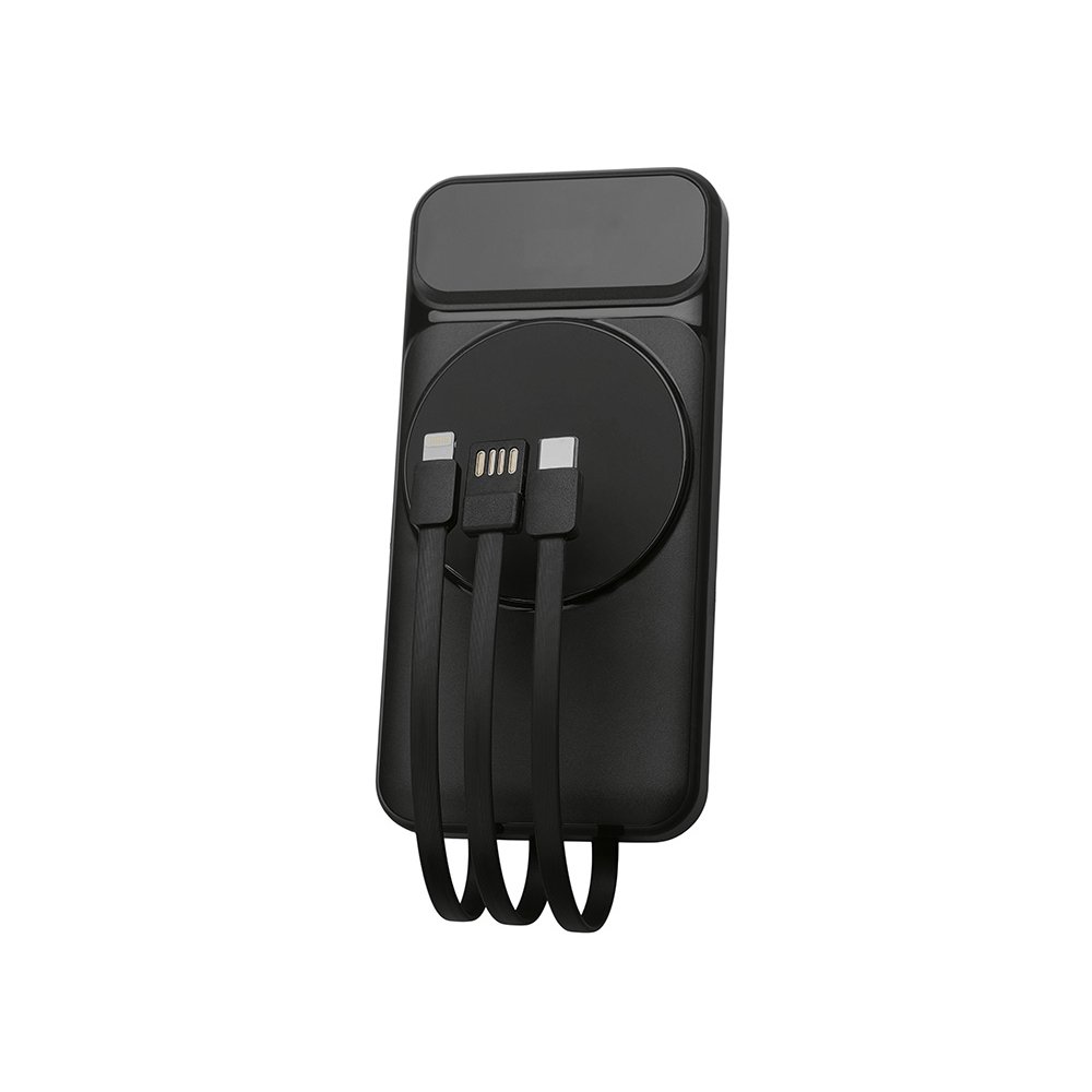 - Функциональный и удобный внешний аккумулятор на 10 000 мАч обеспечивает быструю зарядку как по кабелям, так и беспроводным способом, поддерживая современные стандарты скорости. Цифровой дисплей на верхней панели мгновенно показывает точный уровень заряда, а встроенные кабели Lightning, USB-C и входной USB-A устраняют необходимость в дополнительных проводах — всё, что нужно для каждодневного использования, уже есть в самом гаджете. Компактные габариты, сопоставимые с размером смартфона, делают устройство идеальным для путешествий и повседневного использования. Сильные магниты гарантируют надёжное крепление при беспроводной зарядке. В комплекте есть силиконовая накладка: перед использованием удалите защитный стикер и прикрепите её к корпусу. - Встроенные кабели (Lightning, USB-C, USB-A) — не нужно искать дополнительные кабели: зарядка других устройств и подзарядка аккумулятора происходят через встроенные кабели. - Сильные магниты - Цифровой дисплей уровня заряда и статуса зарядки - Функции быстрой проводной и беспроводной зарядки - Упаковка с удобным и быстрым открытием