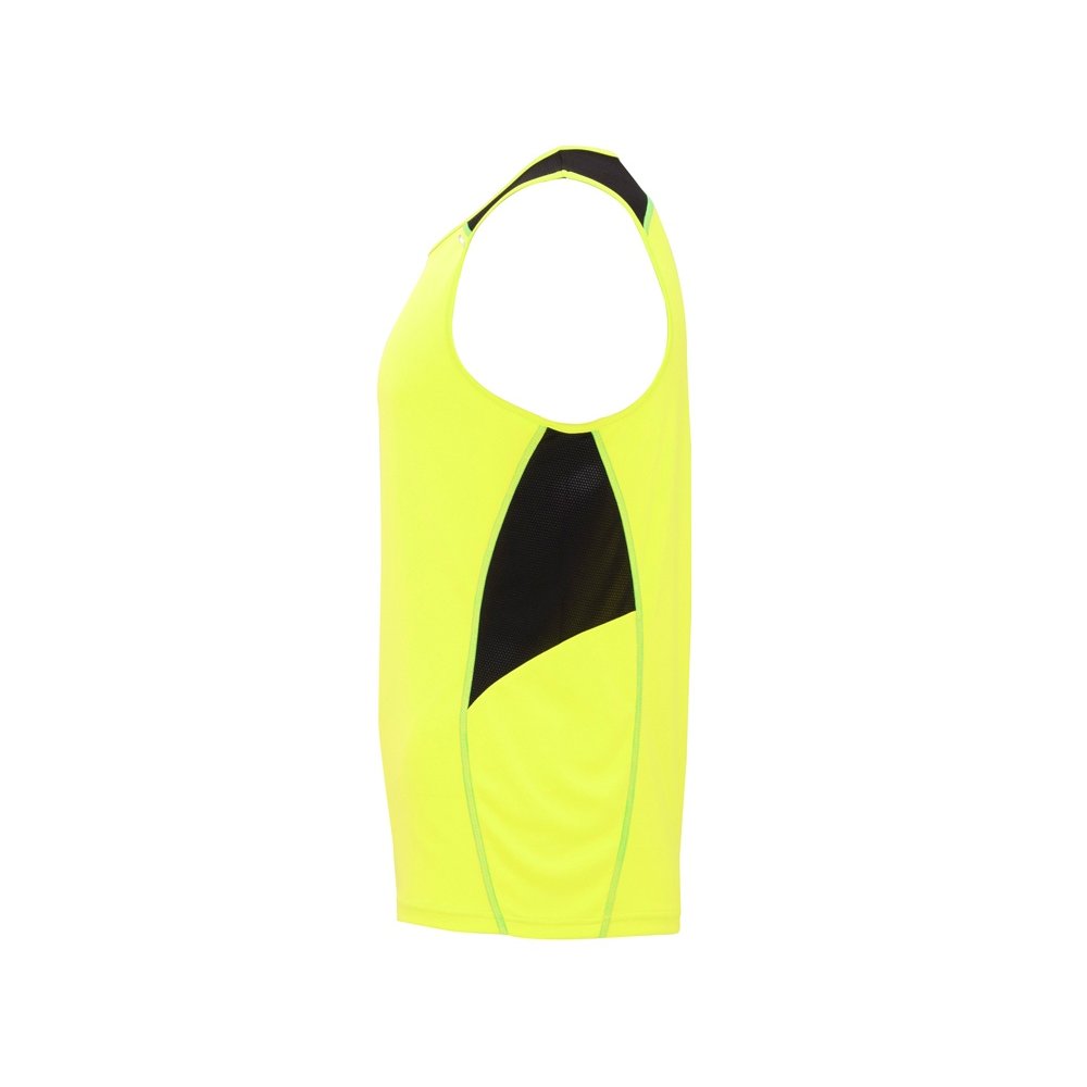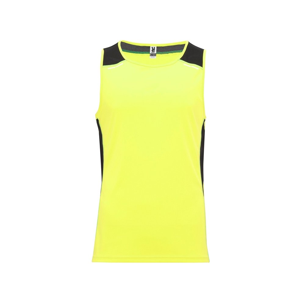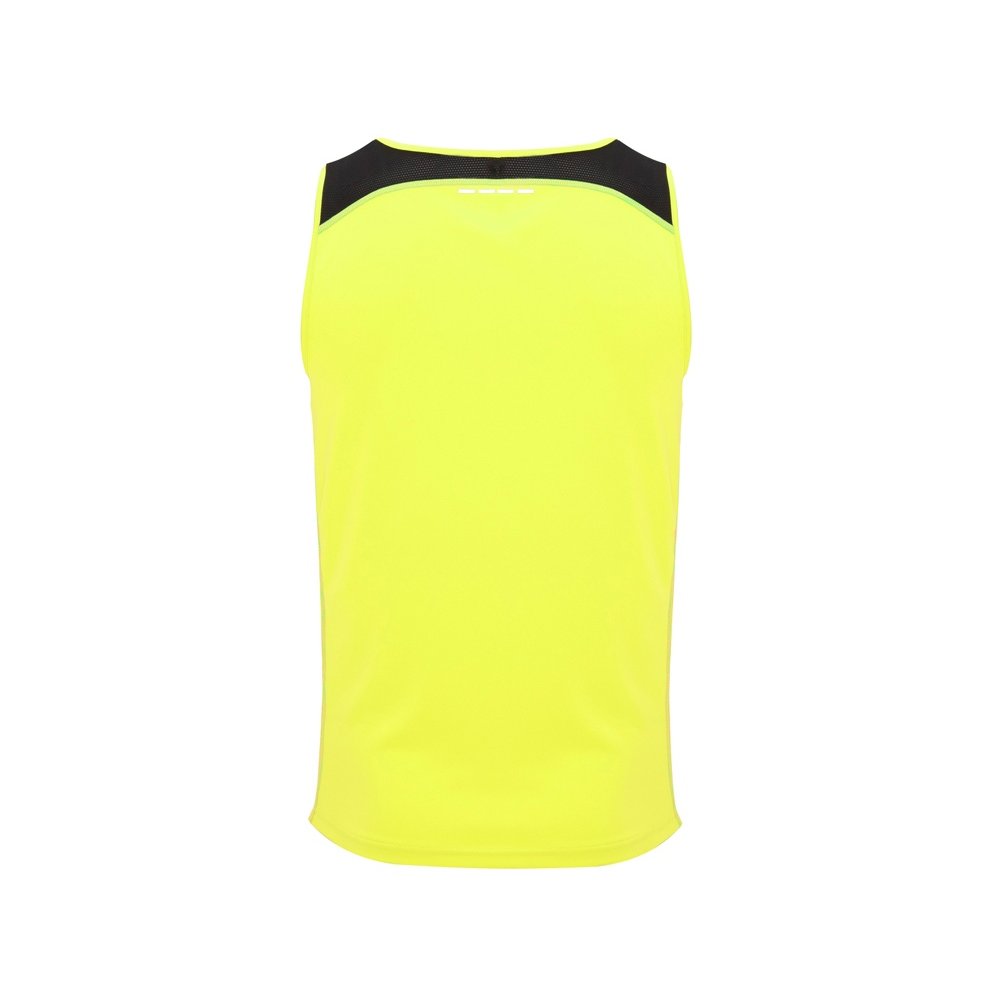- Спортивная майка со светоотражающими деталями. Круглый вырез горловины укреплен декоративной строчкой. Комбинация двух полиэстеровых полотен: основное полотно интерлок, боковые и верхние вставки из микроперфорированного полотна для повышенной воздухопроницаемости. Технологичное полотно быстро сохнет.