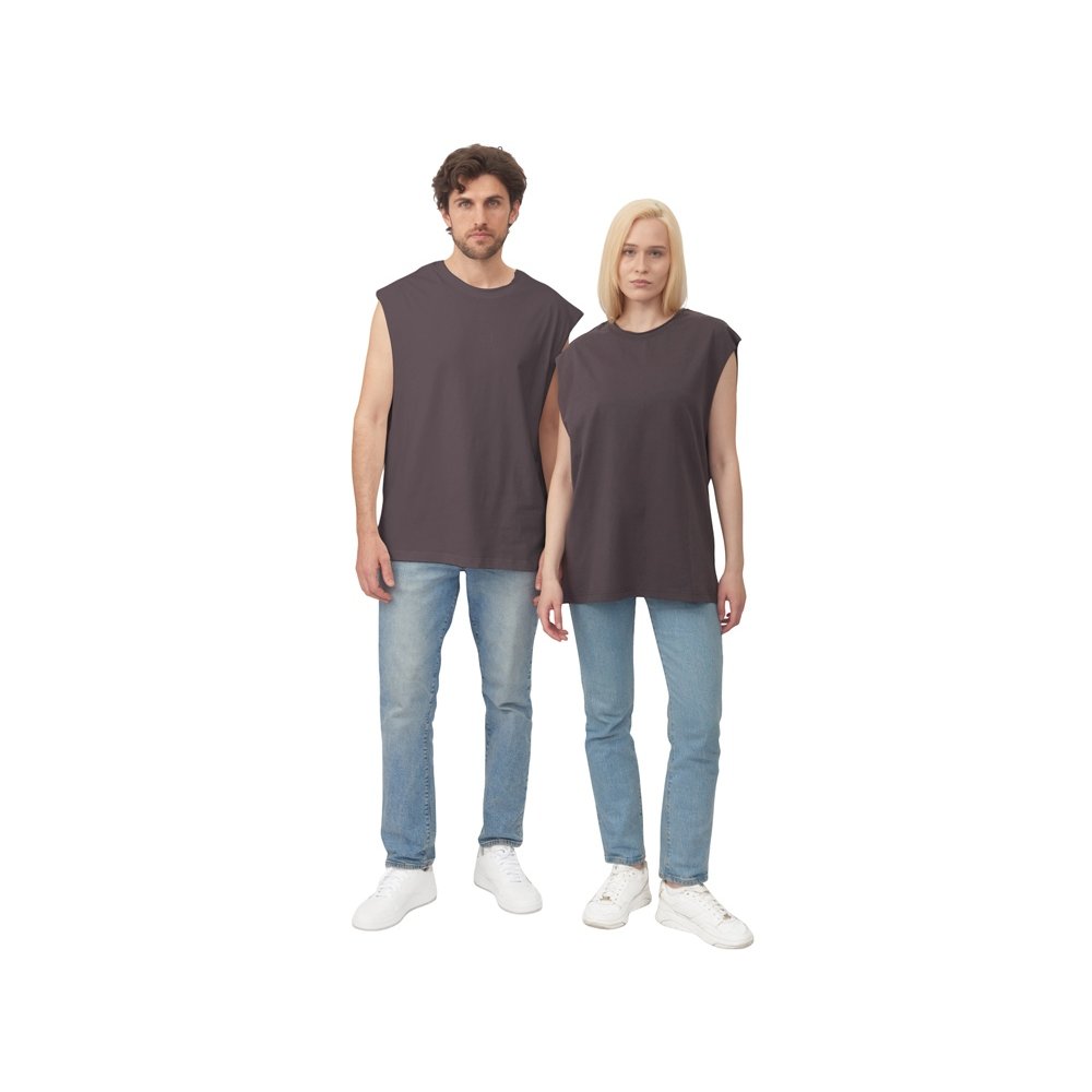 - Майка унисекс расширенного силуэта со спущенным плечом, выполнена из плотного джерси 180гр. Горловина спинки дополнительно укреплена тесьмой из основной ткани. Скрытый лейбл позволит сделать акцент на брендировании клиента. Расслабленная посадка модели и необработанные швы проймы и края горловины позволяют чувствовать себя комфортно и оставаться на волне трендов.