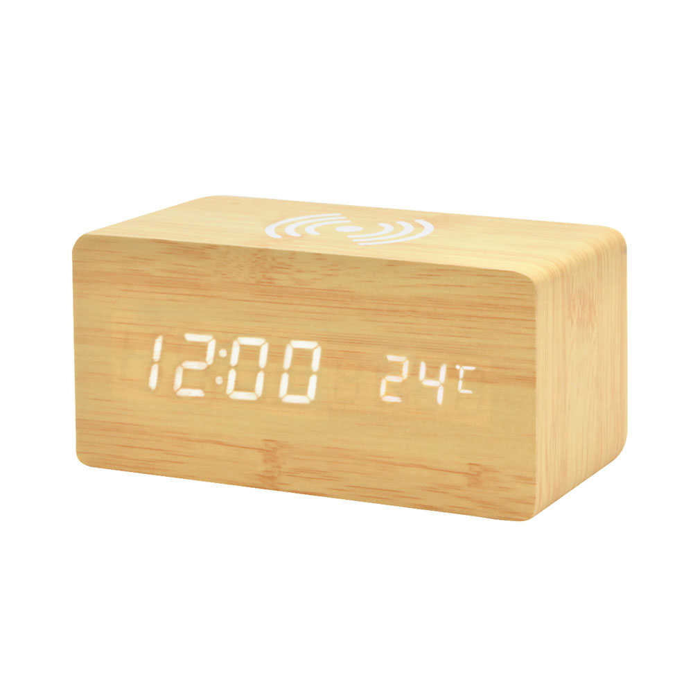 - Многофункциональные деревянные часы с белой подсветкой и функцией беспроводной зарядки. Функции: часы, дата, температура, 3 режима будильника, функция управления звуком (когда данная функция активирована, дисплей гаснет через 15 секунд; вы можете активировать дисплей, хлопнув в ладоши, или слегка постучав по часам). В промежуток времени 18.00-7.00 яркость подстветски снижается на 50%. Источник питания: от сети, либо с использованием 3х батареек 3А (не входят в комплект). Поставляются вместе с русскоязычной инструкцией и USB кабелем для подключения к сети Размер товара: 15 * 7 * 7 см