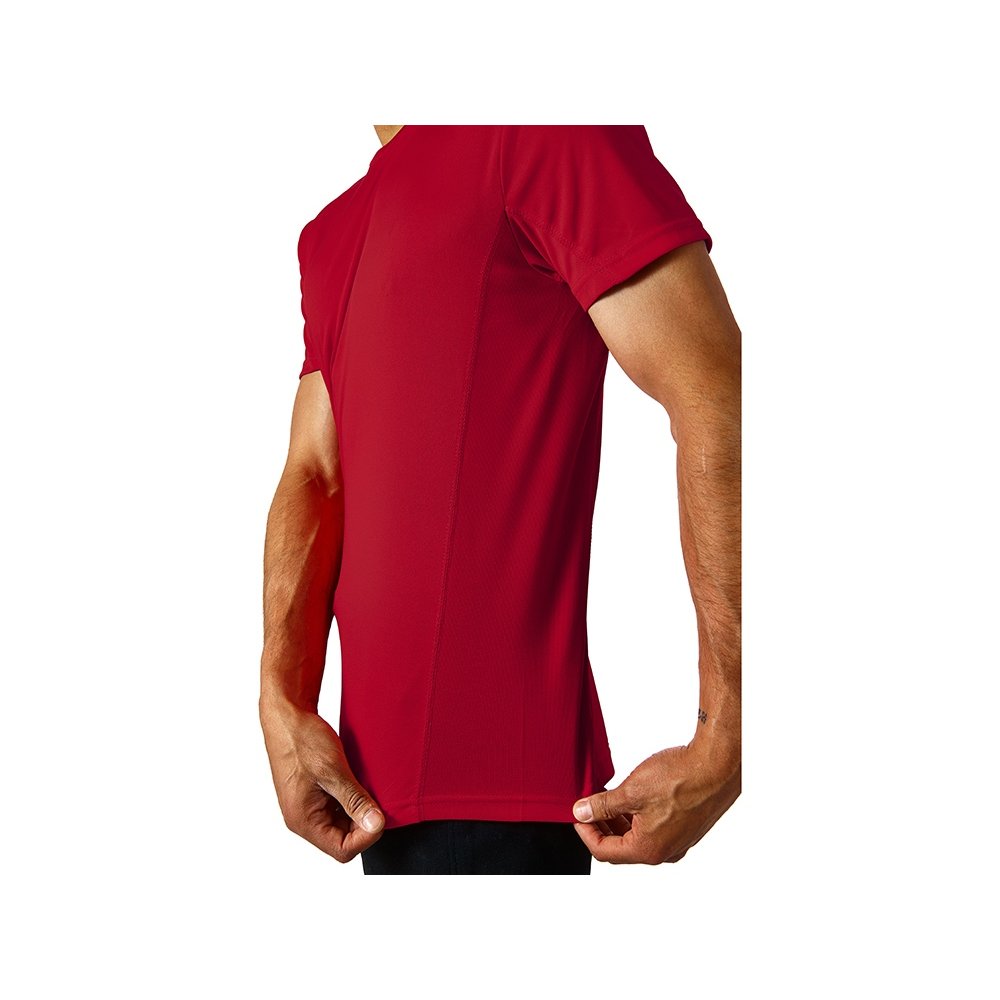 - Мужская спортивная футболка выполнена из двух разных видов полотна: спинка и перед из интерлока имеют гладкую поверхность, а декоративные вставки выполнены из спортивной сетки ячеистой структуры. Благодаря наличию таких вставок воздух свободно проникает под футболку, охлаждая кожу во время спортивных нагрузок. Ткань, из которой выполнено полотно, сохраняет форму и цвет даже при частых стирках, а декоративная отстрочка позволяет футболке держать форму. • комфортная посадка не сковывает движения во время занятий спортом • хорошо держит форму при частых стирках, не линяя и не деформируясь • сетчатые вставки для вентиляции
