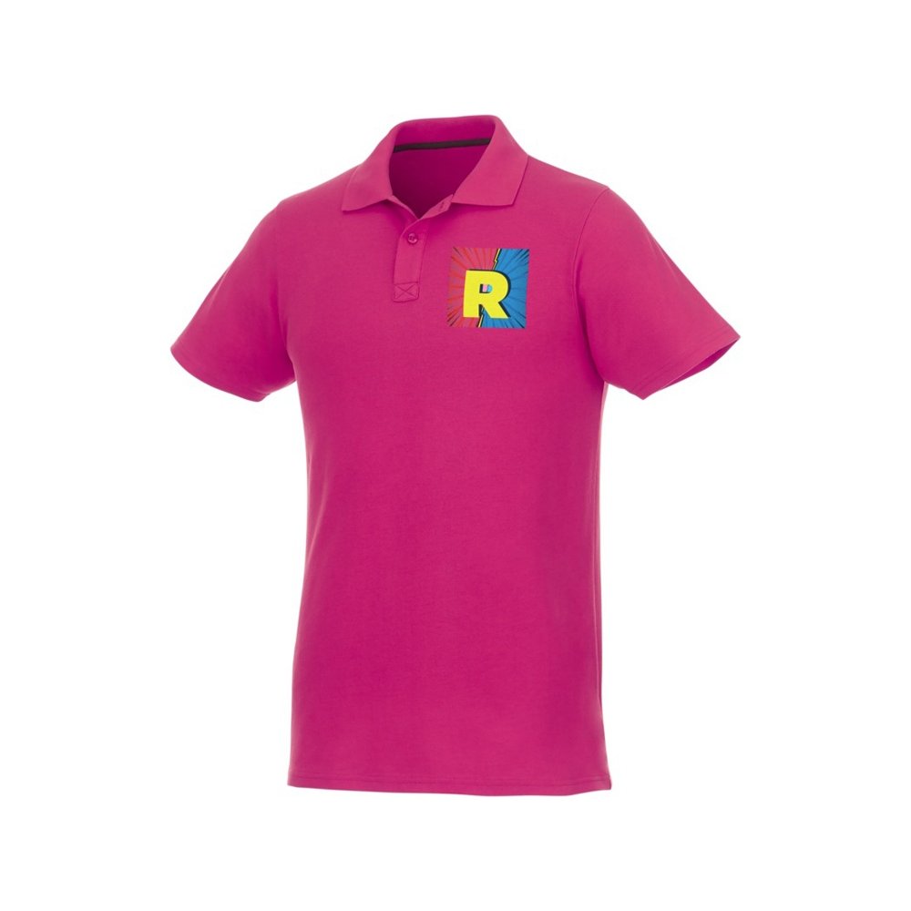 - Мужское поло Helios с коротким рукавом. Отрезной-отрывной ярлык для комфорта. Воротник гладкой вязкой в рубчик. Планка с двумя пуговицами. Двойная строчка на воротнике и внизу изделия. Пуговицы в цвет изделия. Полоска на горловине в контрастном цвете. Трикотаж Piqué, 100 % хлопок. 180 г/м².