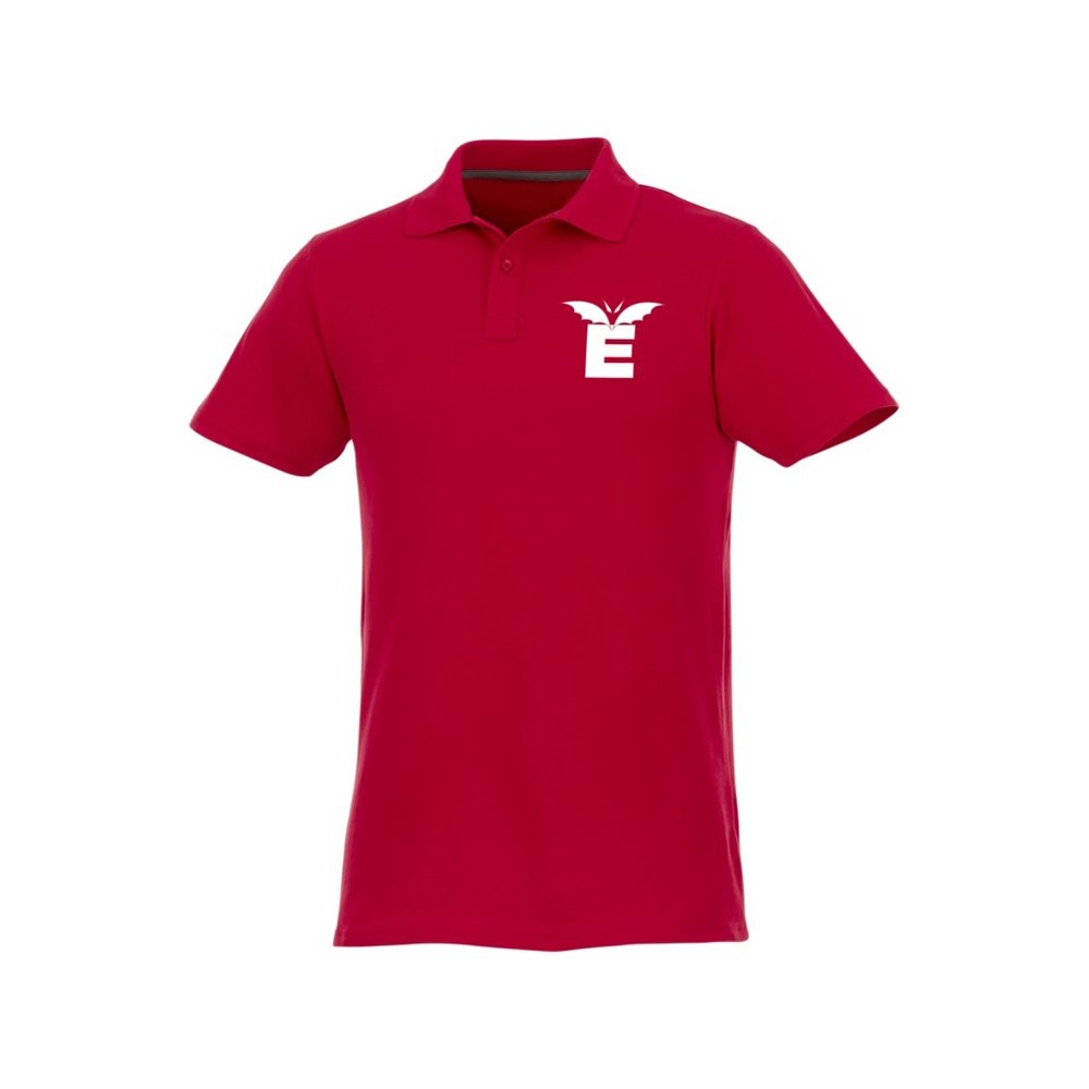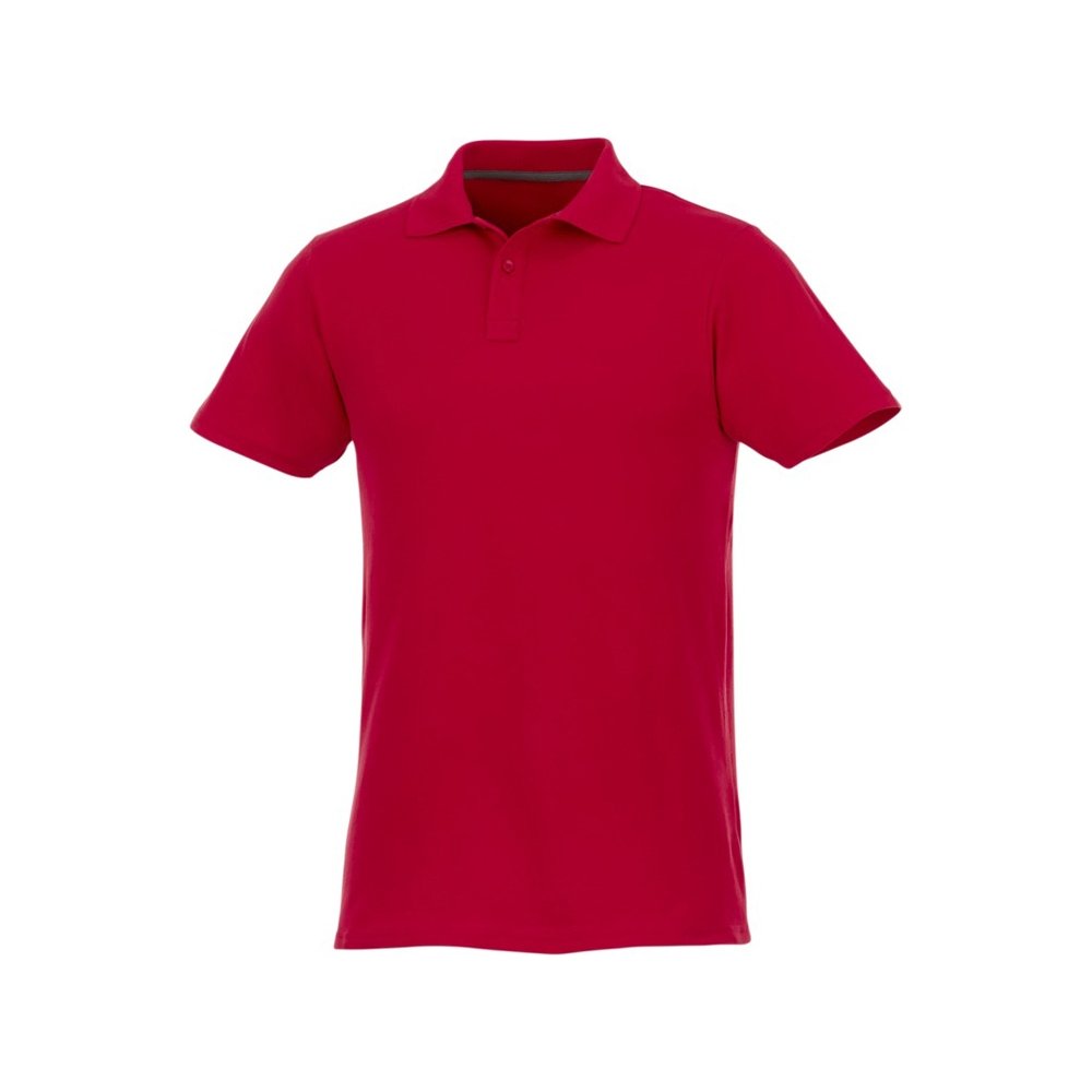 - Мужское поло Helios с коротким рукавом. Отрезной-отрывной ярлык для комфорта. Воротник гладкой вязкой в рубчик. Планка с двумя пуговицами. Двойная строчка на воротнике и внизу изделия. Пуговицы в цвет изделия. Полоска на горловине в контрастном цвете. Трикотаж Piqué, 100 % хлопок. 180 г/м².
