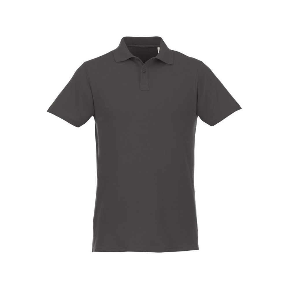 - Мужское поло Helios с коротким рукавом. Отрезной-отрывной ярлык для комфорта. Воротник гладкой вязкой в рубчик. Планка с двумя пуговицами. Двойная строчка на воротнике и внизу изделия. Пуговицы в цвет изделия. Полоска на горловине в контрастном цвете. Трикотаж Piqué, 100 % хлопок. 180 г/м².