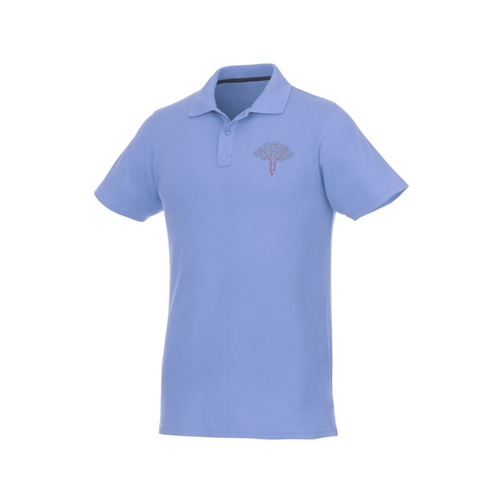 - Мужское поло Helios с коротким рукавом. Отрезной-отрывной ярлык для комфорта. Воротник гладкой вязкой в рубчик. Планка с двумя пуговицами. Двойная строчка на воротнике и внизу изделия. Пуговицы в цвет изделия. Полоска на горловине в контрастном цвете. Трикотаж Piqué, 100 % хлопок. 180 г/м².