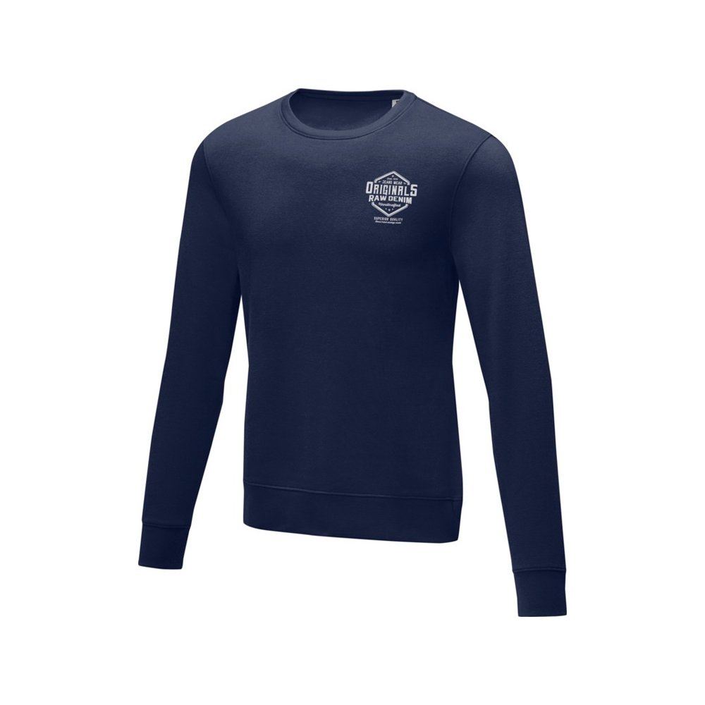 - Мужской свитер Zenon с круглым вырезом. Основная этикетка, которую можно оторвать или отрезать, без неудобных пришитых ярлыков. Круглый вырез. Воротник из гладкого трикотажа. С манжетами из гладкого трикотажа в рубчик. С подшивкой из гладкого трикотажа в рубчик. Внутренняя сторона покрыта ворсом. Самоклеящаяся лента на воротнике. Трикотаж 50% Хлопок, 50% Полиэстер, 240 g/m2.