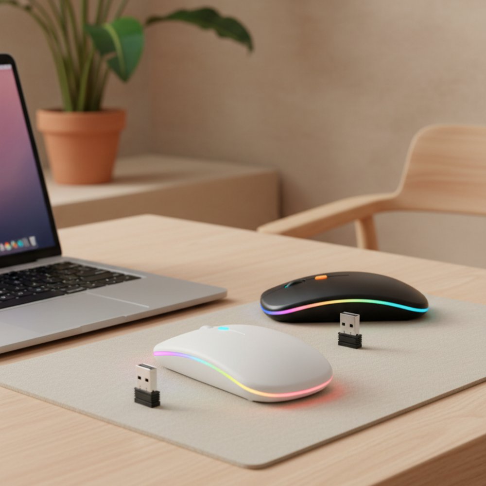 - Яркая, практичная оптическая мышь с ресивером USB для беспроводного радиочастотного соединения и специальной функцией DPI (800/1200/1600 DPI). Кнопка DPI позволяет быстро менять чувствительность мыши, что очень удобно во время игры. Сверхлегкая благодаря эргономичному дизайну. Внутри аккумулятор для многократного использования, который позволяет вам не беспокоиться о том, что гаджет разрядится, ведь мышкой можно пользоваться даже в процессе зарядки. Совместима с операционными системами Windows. Есть 2 варианта подсветки мышки: 1) ее можно выключить, 2) подстветка на мышке меняется автоматически, определенный цвет не фиксирутеся. - Подсветка логотипа достигается при помощи гравировки - Радиочастотная беспроводная мышь - Частота соединения: 2.4G. - Радиус действия до 10 м. - DPI (количество точек на дюйм): 1600