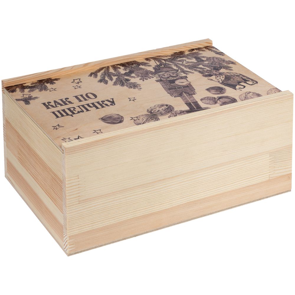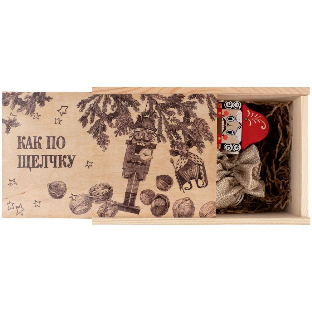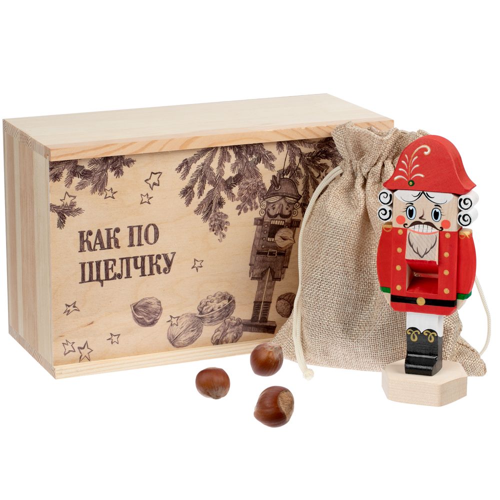 - Могут ли чудеса случаться как по щелчку? Конечно! Праздничный набор позволит окунуться в сказочный мир детства. В аккуратной деревянной коробочке лежит настоящий орехокол — Щелкунчик, персонаж новогодней волшебной истории. С лесными орехами он справляется на раз.