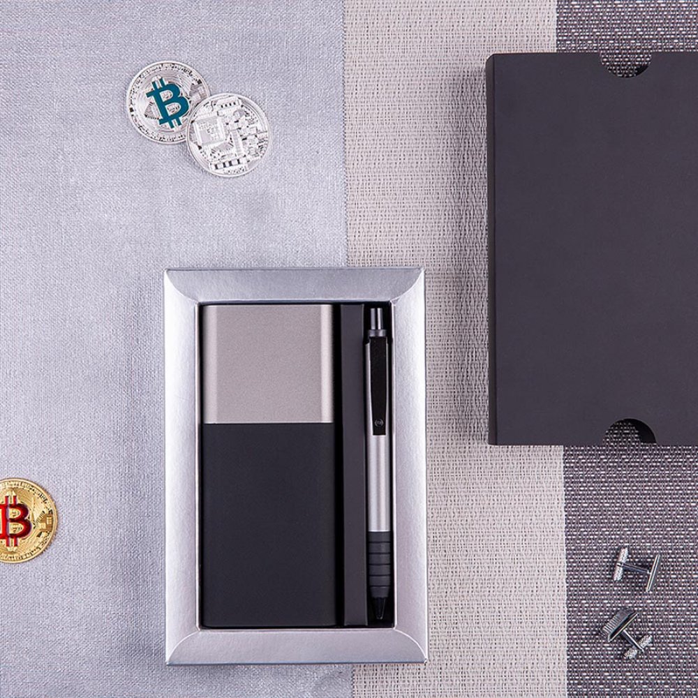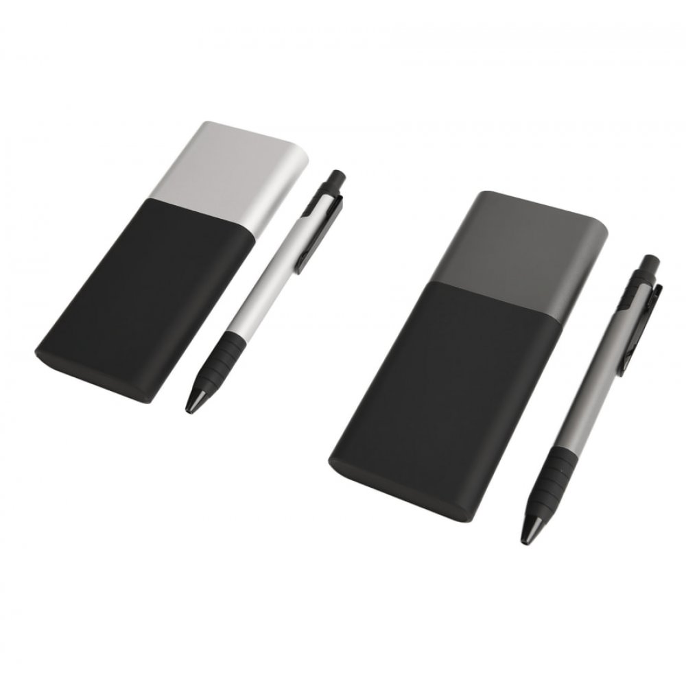 Набор подарочный BLACK GUN; универсальное зарядное устройство(10000мАh) и ручка; серебристый черный, серебристый арт. 20221/47