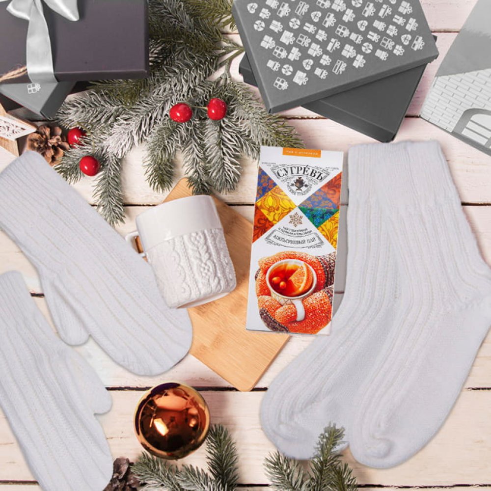 Набор подарочный SNOWFALL: кружка, варежки и носки бренда nbsp;НАСВЯЗИ©, представленный в оригинальной подарочной упаковке. Идеальным дополнением к набору станет один из чаев серии "СУГРЕВЪ Согревающий". Чай заказывается отдельно!