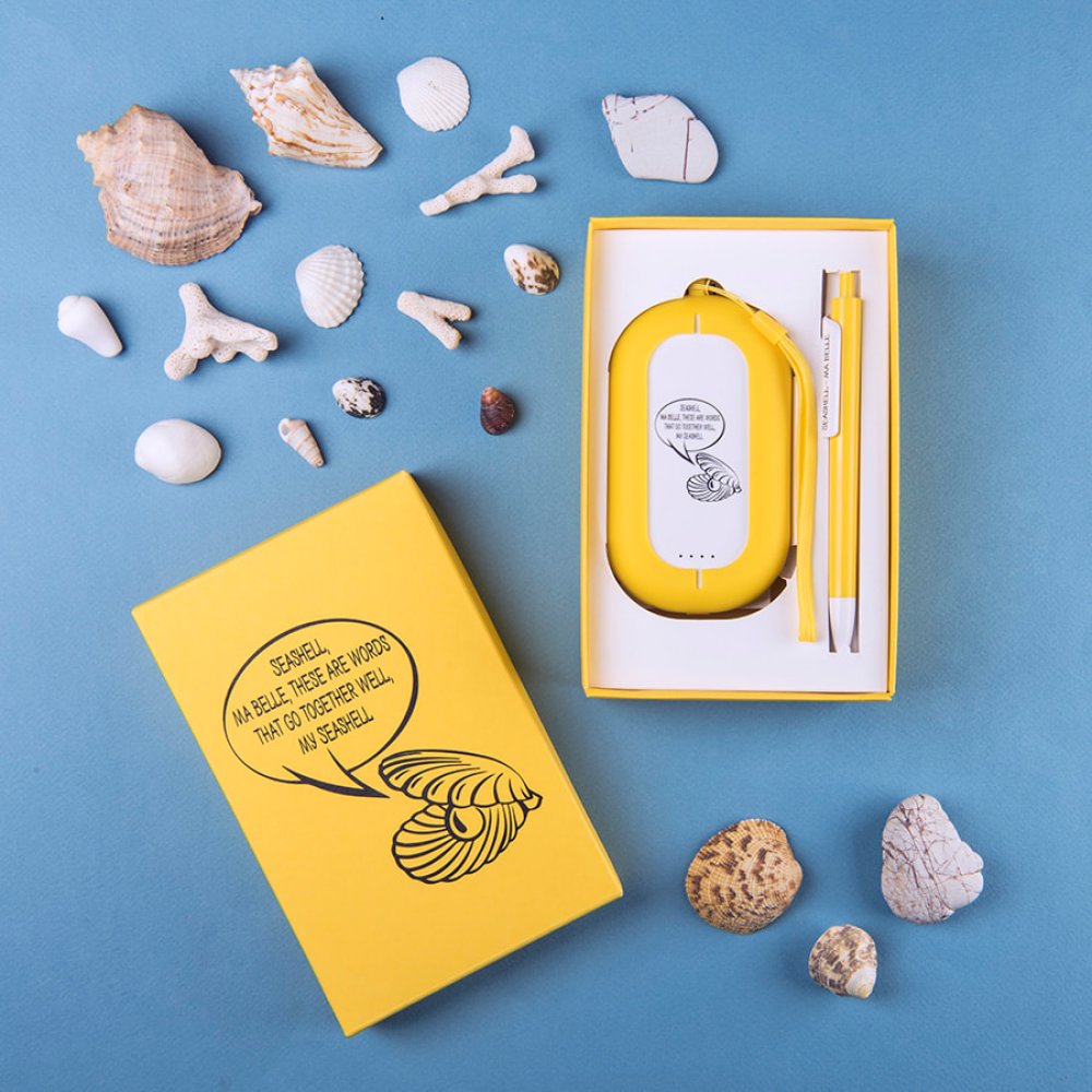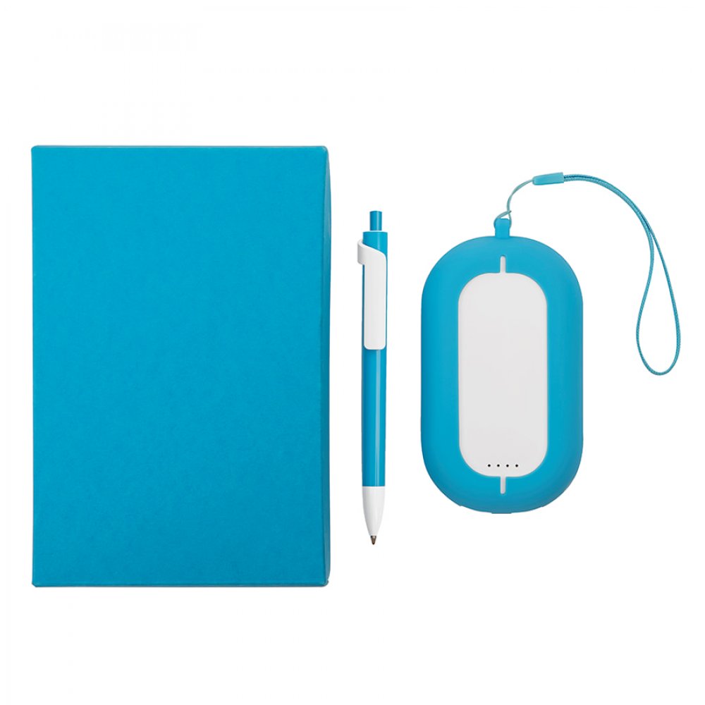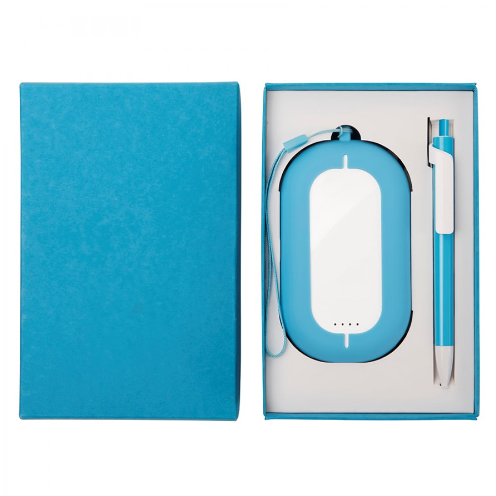 Набор SEASHELL-2: универсальное зарядное устройство (6000 mAh) и ручка в подарочной коробке белый, голубой арт. 25303/22