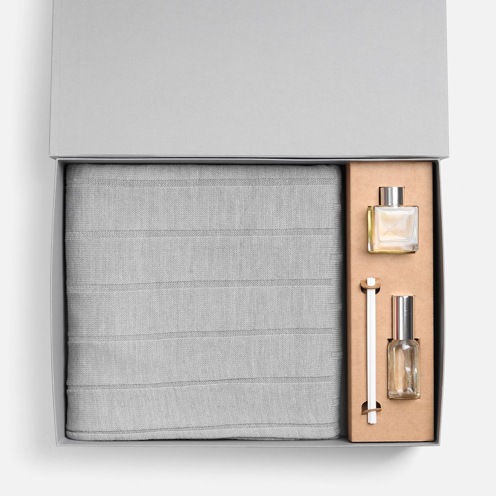 Мягкий плед с элегантным узором подарит комфорт и тепло, а стильный диффузор наполнит пространство нежными, свежими нотами, превращая каждый момент в маленький ритуал наслаждения.