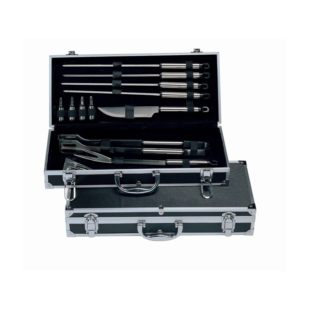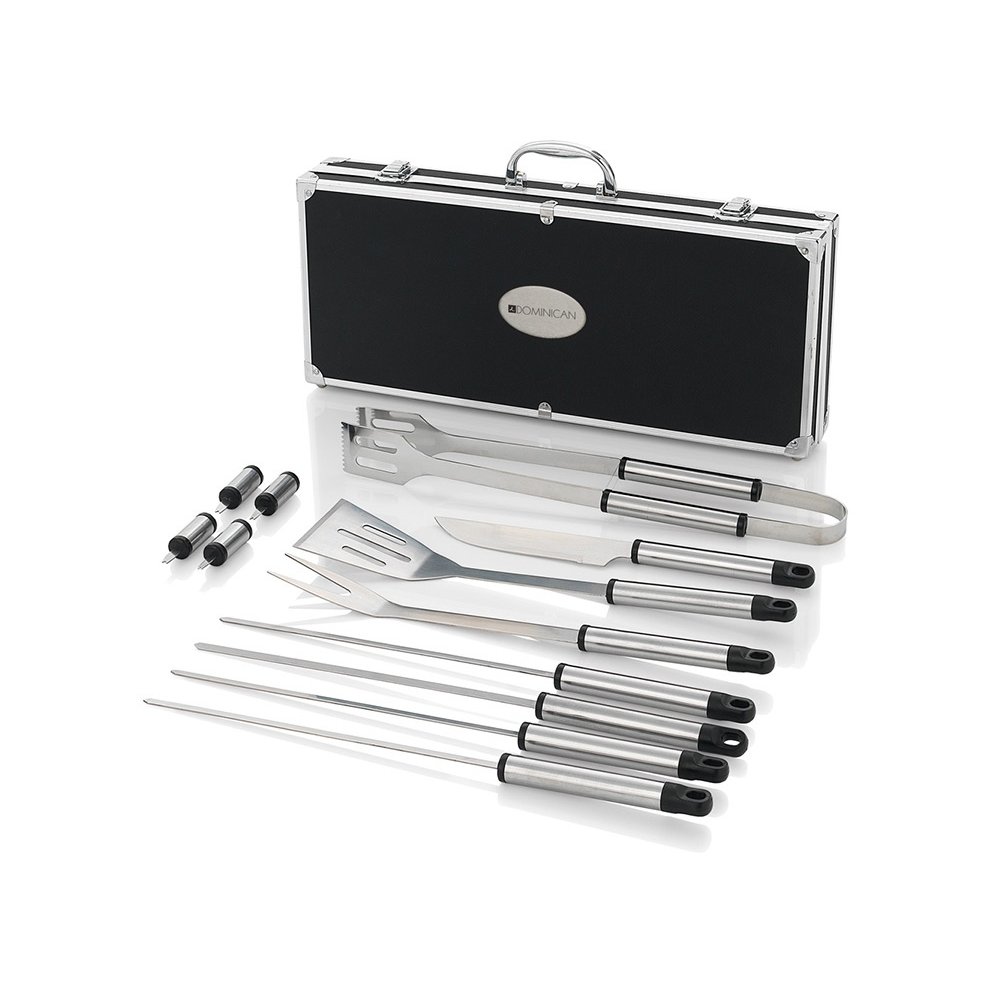 - Набор для барбекю 12 предметов. 4 шампура, 4 шпажки для снятия шашлыка, нож, щипцы, вилка, лопатка. Шильд в комплекте 4,8 х 8,3 см.