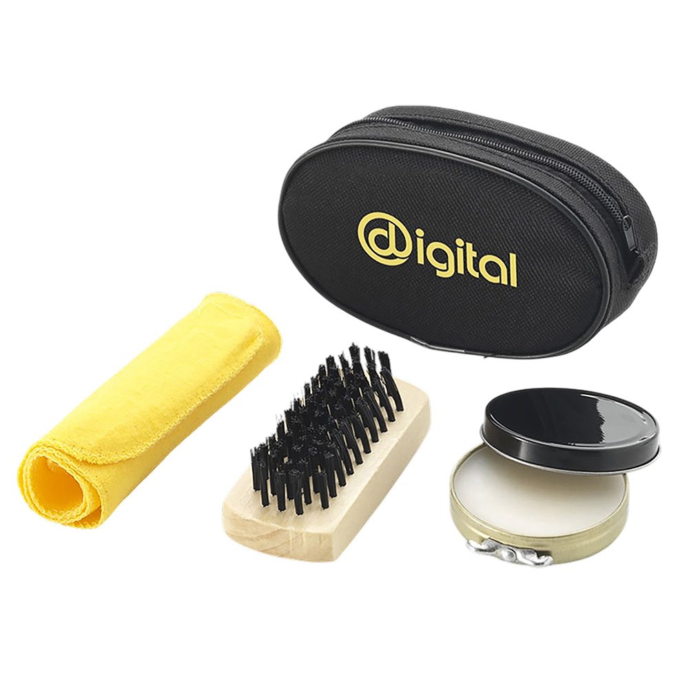 - Набор для ухода за обувью - отличный подарок для тех, кто часто ездит в деловые поездки. В наборе такие необходимые аксессуары, как бесцветный крем для обуви, щетка, салфетка для полировки. Компактно упакованы в нетканый чехол, на который можно нанести изображение.
