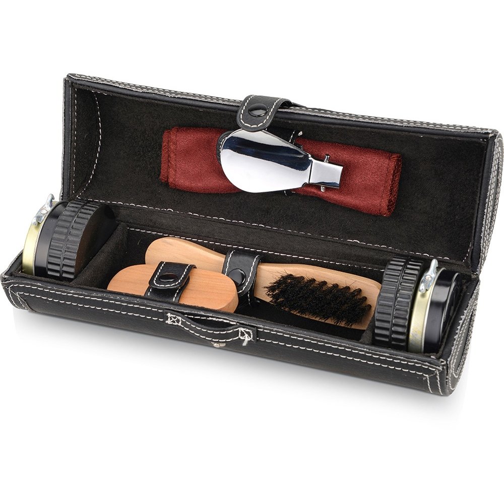 - Подарочный набор для чистки обуви включает в себя 8 предметов, которые предназначены для поддержания чистоты вашей обуви. В комплект входят чистящие средства, так что не придется покупать их отдельно. Набор упакован в солидный футляр "под кожу", который удобно брать в дорогу, в командировку. Набор представлен также и в других цветах.