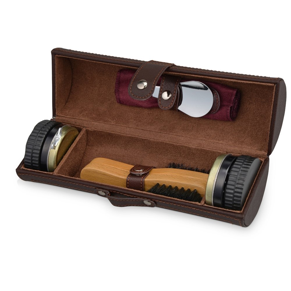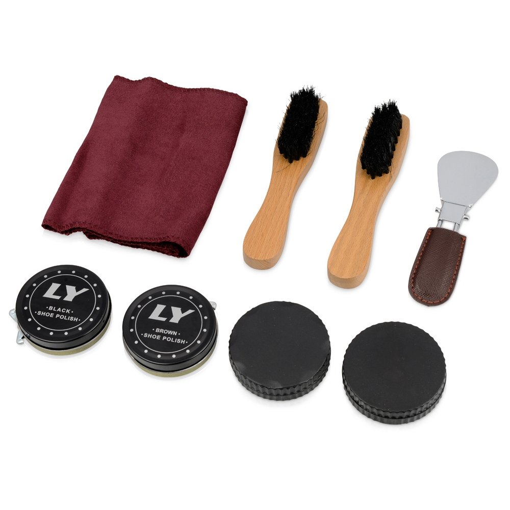 - Подарочный набор для чистки обуви включает в себя 8 предметов, которые предназначены для поддержания чистоты вашей обуви. В комплект входят чистящие средства, так что не придется покупать их отдельно. Набор упакован в солидный футляр "под кожу", который удобно брать в дорогу, в командировку. Набор представлен также и в других цветах.