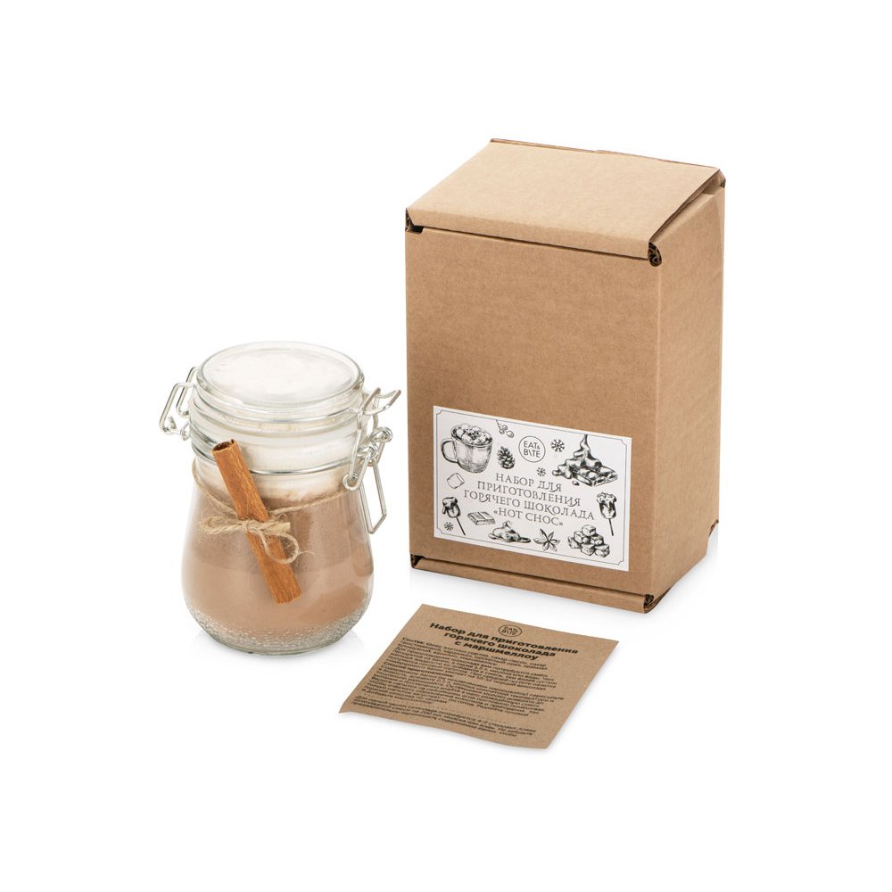 - Самый романтичный, надежный и вкусный способ согреться в морозную зиму — чашка горячего шоколада, приготовленного своими руками! После прогулки в зимнем лесу, или же после активного катания на лыжах или коньках, а может быть просто перед просмотром любимого фильма, приготовьте этот ароматный, согревающий напиток, который повышает уровень счастья. Нам важно, чтобы каждый мог провести как можно больше времени с родными и близкими, поэтому мы подготовили для вас смесь продуктов для приготовления вкуснейшего горячего шоколада с маршмеллоу! Из банки смеси получится 10-12 порций горячего шоколада. Способ приготовления: Содержимое банки (за исключением маршмеллоу) пересыпьте в ёмкость, добавьте 0,5 л молока комнатной температуры и тщательно размешайте. Оставшееся молоко доведите до кипения и постепенно влейте в него разведённую смесь. Варите напиток на небольшом огне постоянно помешивая, чтобы избежать образования комочков и пригорания. Как только напиток загустеет — он готов. Разлейте готовый горячий шоколад по чашкам и добавьте маршмеллоу. Для одной чашки шоколада потребуется 4-5 столовых ложек шоколадной смеси на 200 мл молока или воды. Не забудьте предварительно перемешать содержимое банки, чтобы смешать слои.