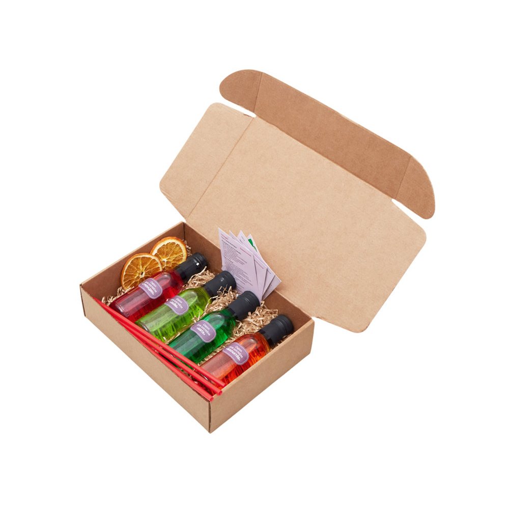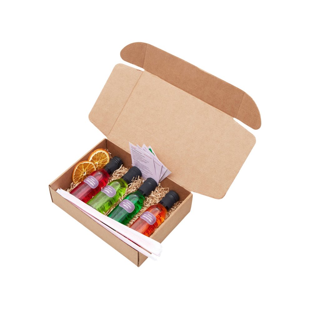 - Подарочный набор, который превращает любой вечер в маленький праздник. В стильной упаковке собраны: - 4 бутылочки сиропов по 100 мл с яркими вкусами: Лайм, Маракуйя, Мята, Гренадин – классика коктейльного бармена. - 6 трубочек для коктейлей. - Подобранные специи для изящного декора напитков. - 4 карточки с рецептами – готовые идеи для быстрого приготовления коктейлей. Такой набор – универсальный и статусный подарок для партнёров, клиентов или сотрудников. Он подчеркнёт внимание к деталям, создаст атмосферу гостеприимства и станет стильным акцентом любого корпоративного мероприятия. В комплект входит: - бутылки с сиропом для коктейлей 100 мл: "Лайм", "Маракуйя", "Мята", "Гренадин" - трубочки для коктейля 6 шт. - специи для декора коктейля - карточки с рецептами 4 шт.