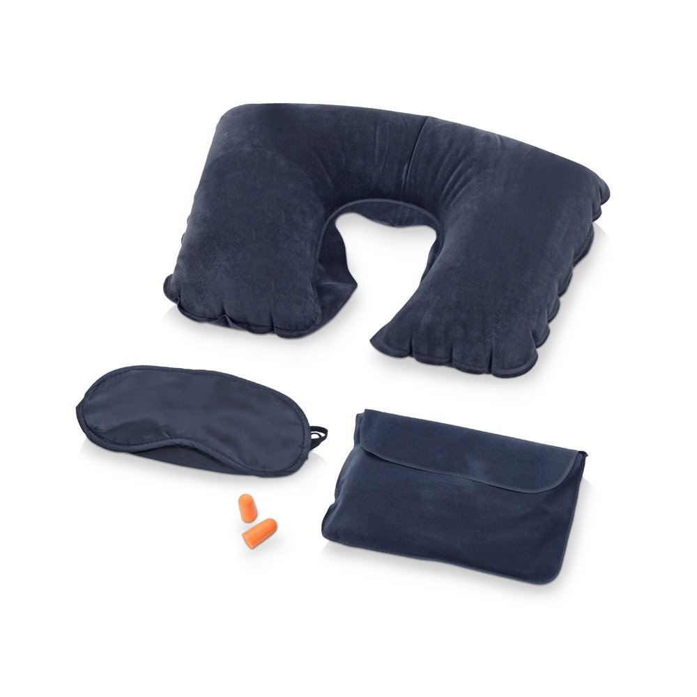 - Замечательный дорожный набор включает в себя надувную подушку, маску на глаза и беруши, все это упаковано в специальный чехол. Приятная на ощупь поверхность набора обеспечит комфортный сон в любой обстановке.