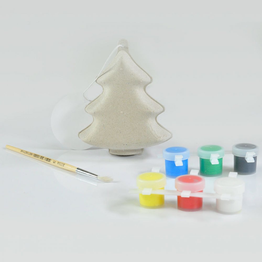 Комплект для раскраски "ЕЛКА", игрушка елочная, кисть, краски, папье-маше некрашеный картон арт. 20805В