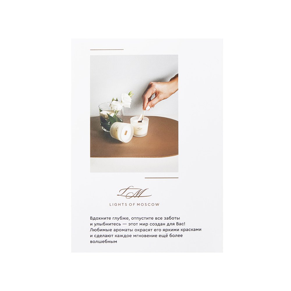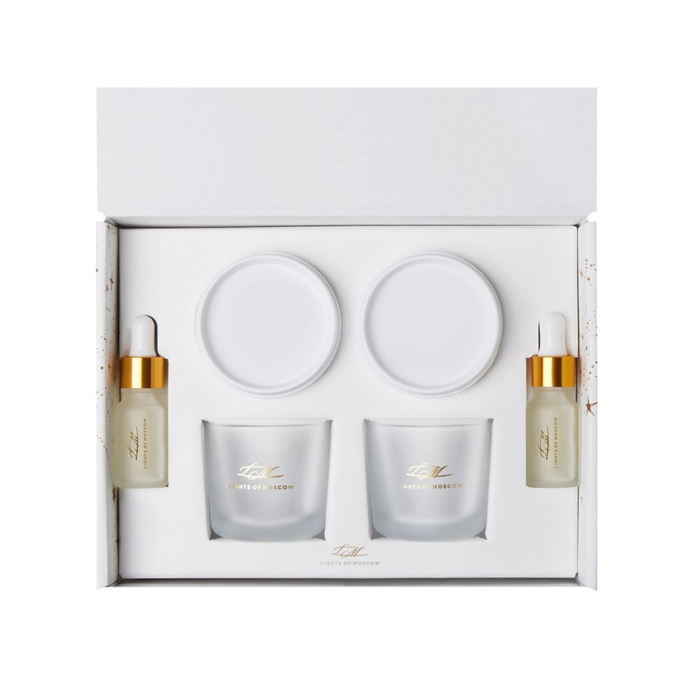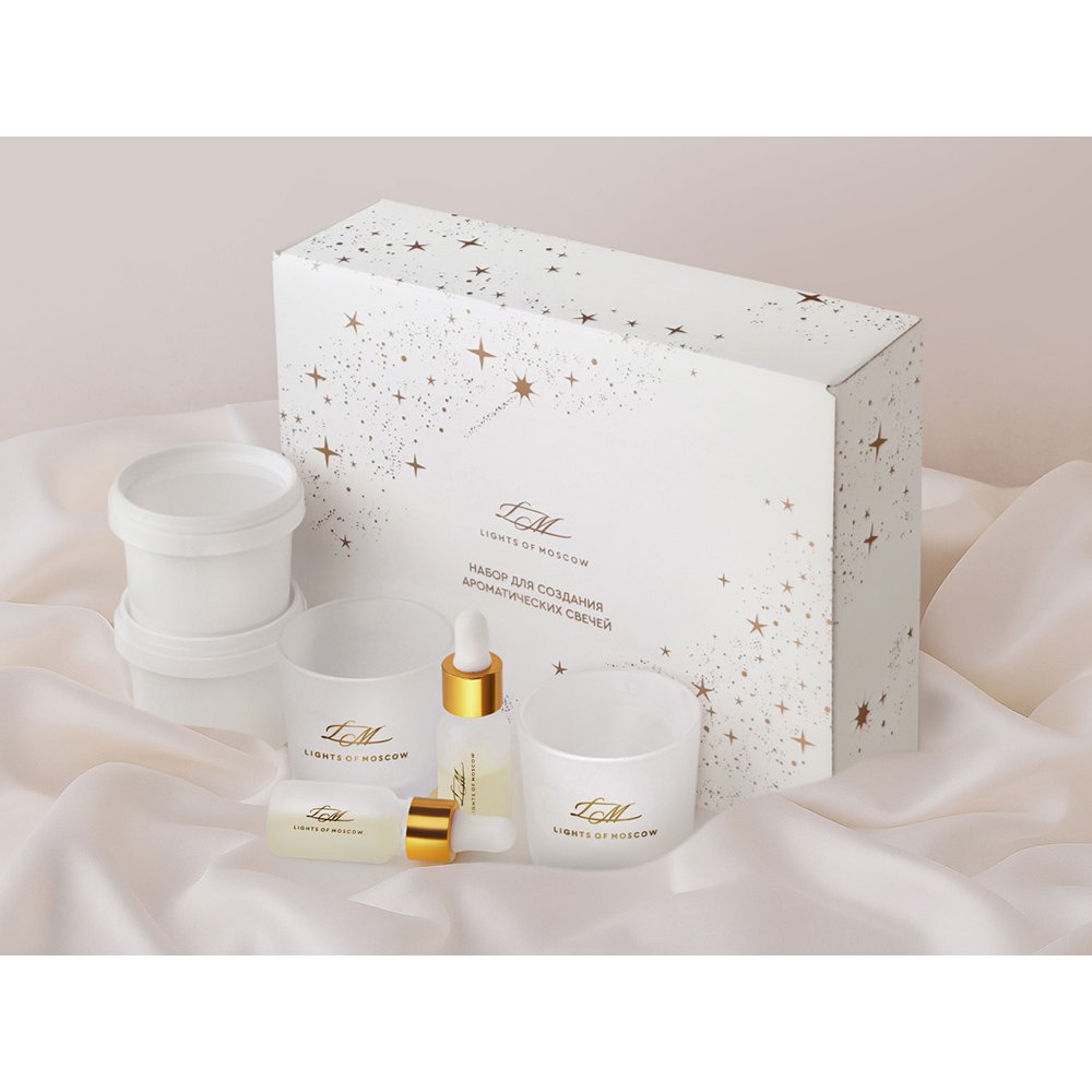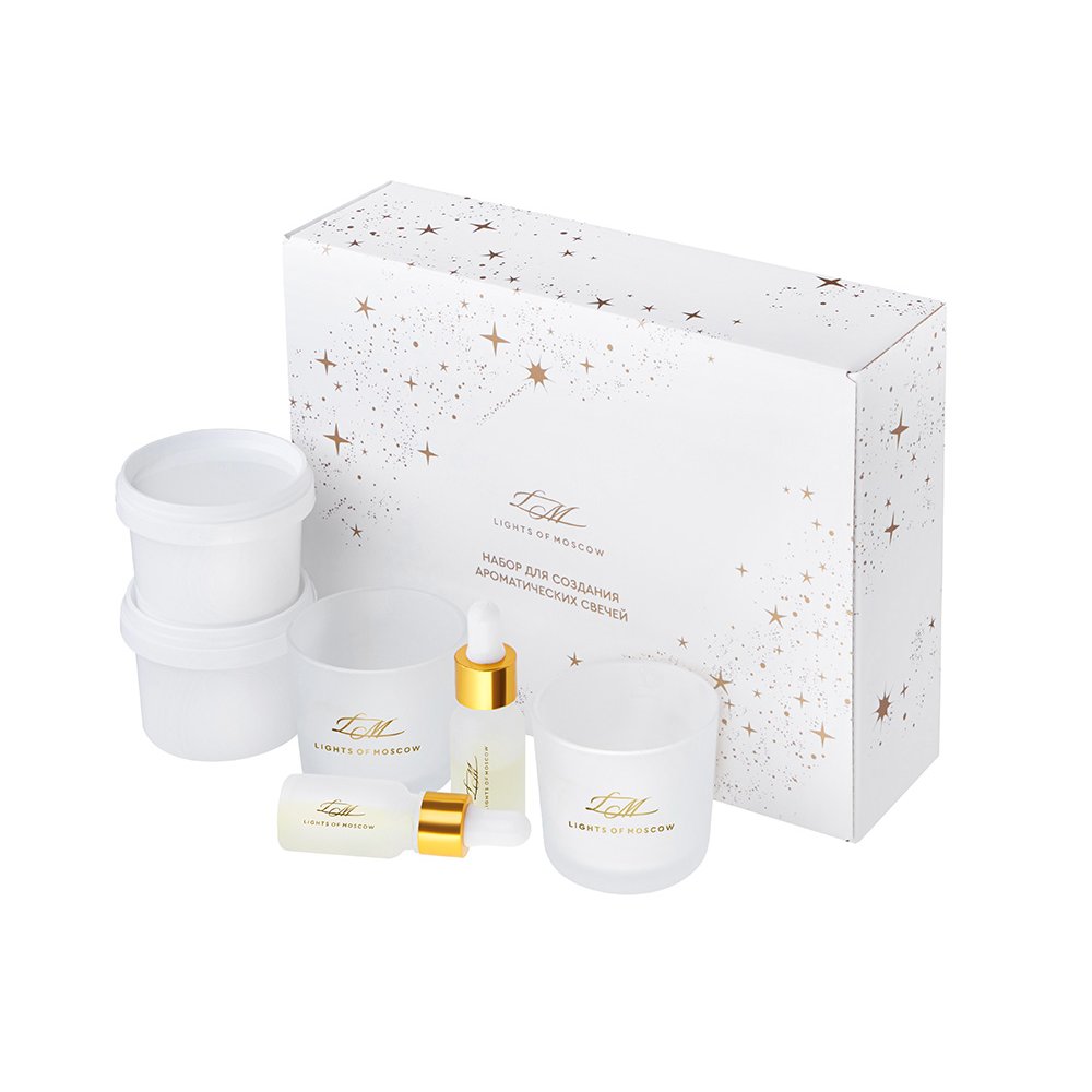 - Уникальный набор для изготовления ароматических свечей станет приятным подарком и погрузит в увлекательный процесс. Набор выполнен в подарочной коробке с ложементом, в него входят все необходимые компоненты и подробная инструкция. Откройте для себя удивительный мир ароматов с Lights of Moscow! Вы сможете создать две невероятные композиции, которые точно понравятся Вам и Вашим близким! Условия хранения: — Свечи: +18…+24 °C, вдали от источников тепла, сквозняков и прямых солнечных лучей. — Рекомендуемая влажность — не более 50%. — Избегайте длительного воздействия яркого света. В комплекте: Подарочная брендированная коробка с ложементом - 1 шт. Стакан стеклянный матовый с тиснением логотипа LM 100 мл - 2 шт. Контейнер с соевым воском – 2 шт. Флакон стеклянный матовый c тиснением логотипа LM с ароматической отдушкой – 2 шт. Деревянный фитиль с держателем – 1 шт. Хлопковый фитиль с держателем - 1 шт. Наклейка для крепления фитиля - 2 шт. Палочка для перемешивания - 2 шт. Салфетка - 1 шт. Перчатка - 1 шт. Открытка - 1 шт. Инструкция по изготовлению ароматических свечей – 1 шт.