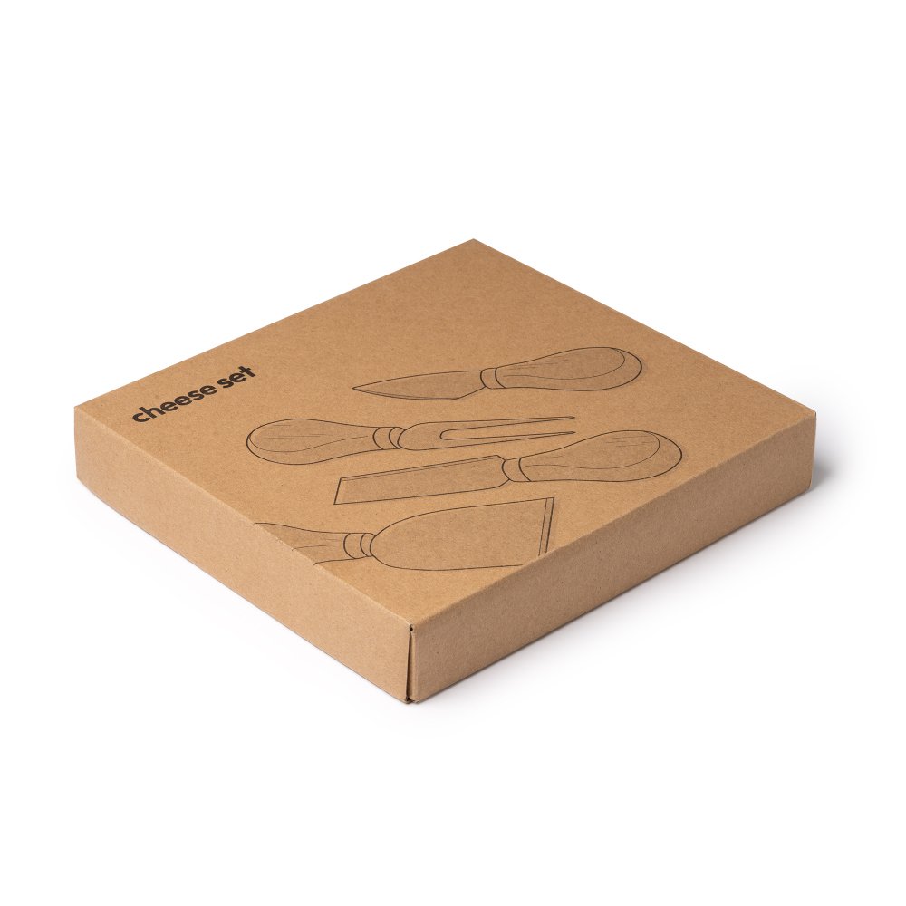 - Набор для сыра с 4 приборами из нержавеющей стали с деревянной ручкой. Представлен в элегантном футляре с внутренней подкладкой.