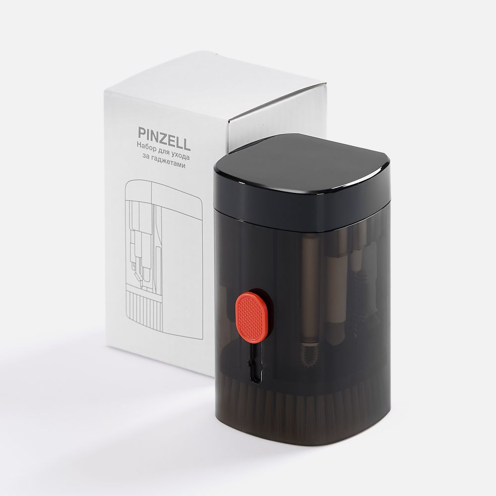 - Набор для ухода за гаджетами Pinzell — решение для тех, кто любит поддерживать свои устройства в порядке и чистоте. Аксессуары набора помогут удалить пыль и загрязнения с разнообразных гаджетов: беспроводных и проводных наушников, кейса, планшета, телефона, клавиатуры, компьютера и фотоаппарата.