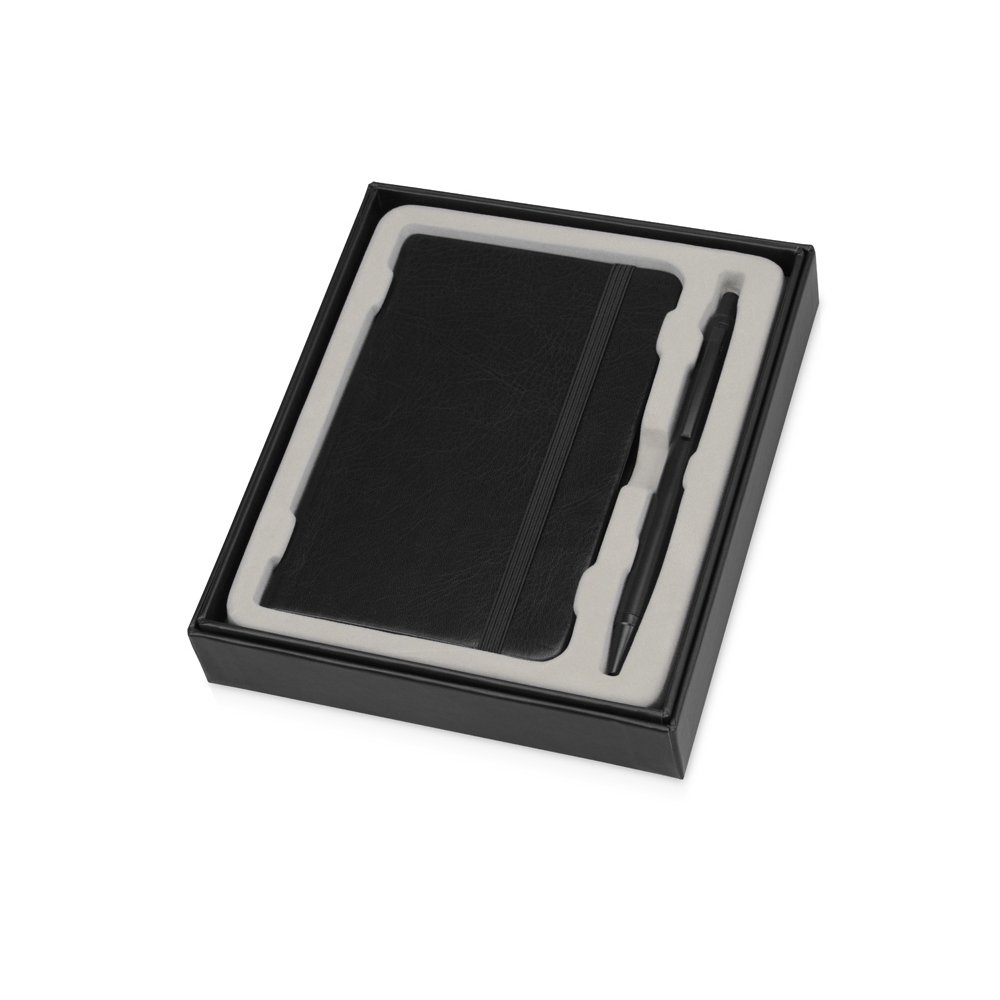 - Набор для записей «Альфа» выдержан в строгом деловом стиле. В него входит линованный блокнот формата А6 с закладкой, эластичной застежкой и удобным карманом для карточек и записок, а также шариковая ручка в пластиковом корпусе с нажимным механизмом. Ручка и блокнот вложены в подарочную коробку. Набор «Альфа» отлично подойдет в качестве подарка к профессиональному празднику или сувенира на память о мероприятии.